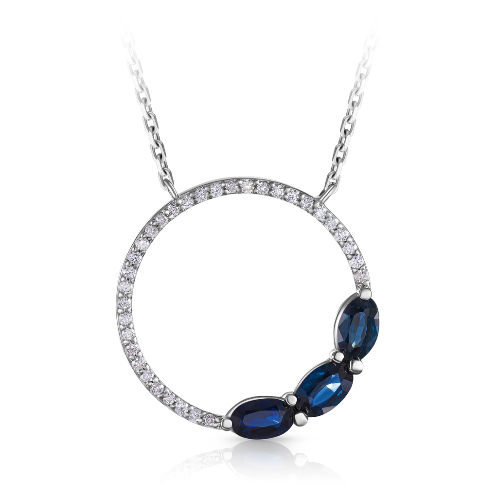 Подвеска из белого золота с бриллиантами, сапфирами, топазом