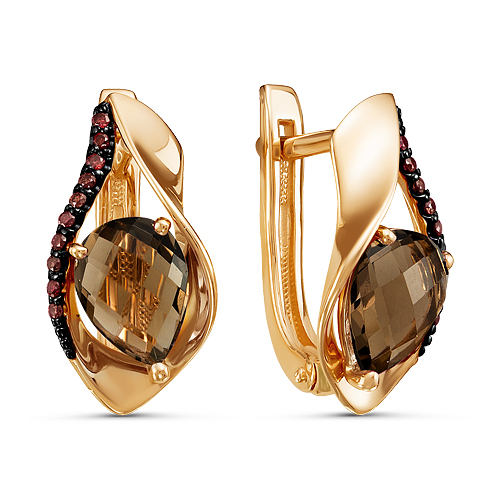Серьги с английским замком из красного золота с бриллиантами, сапфиром