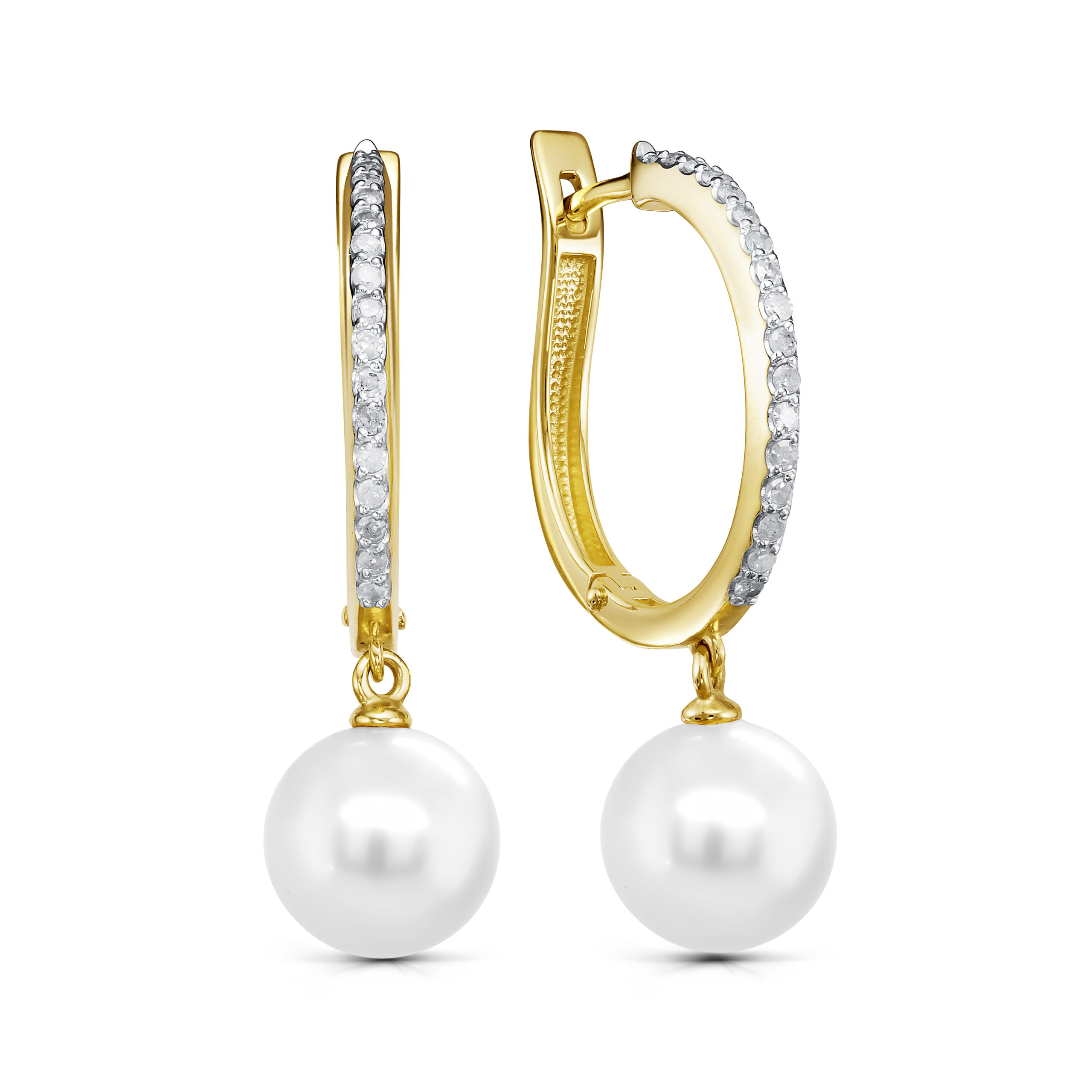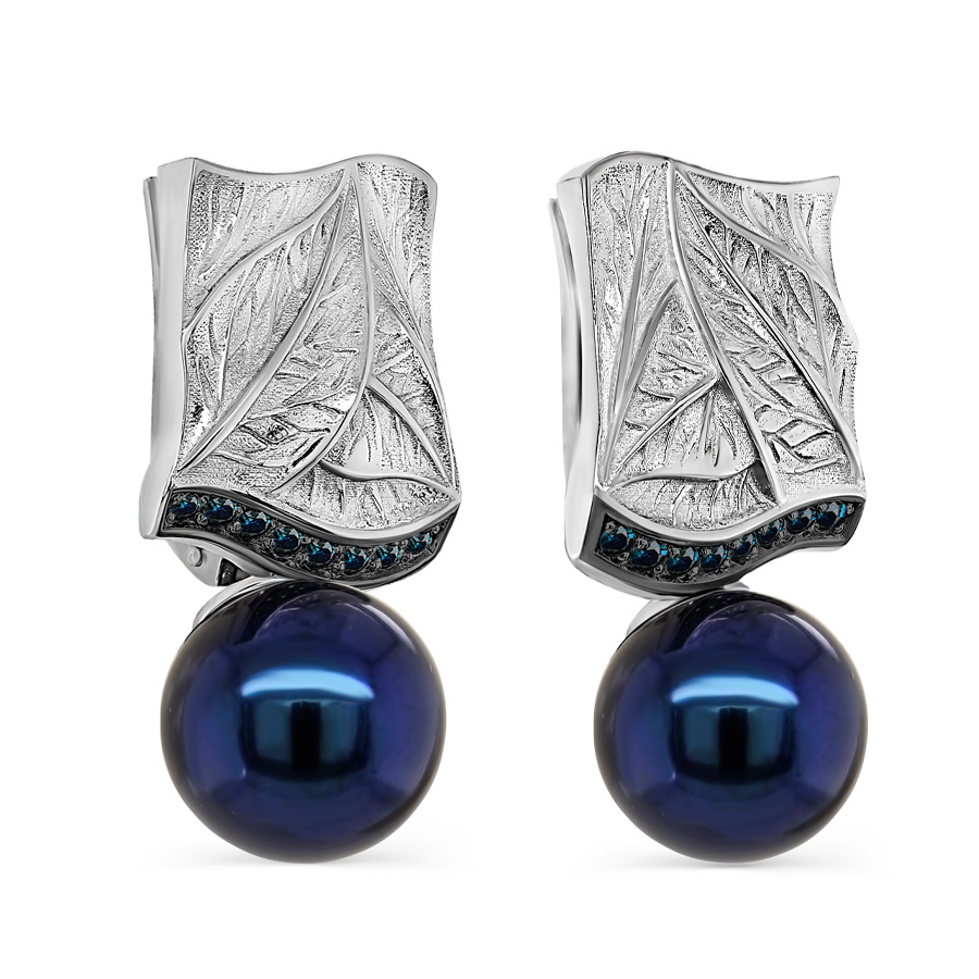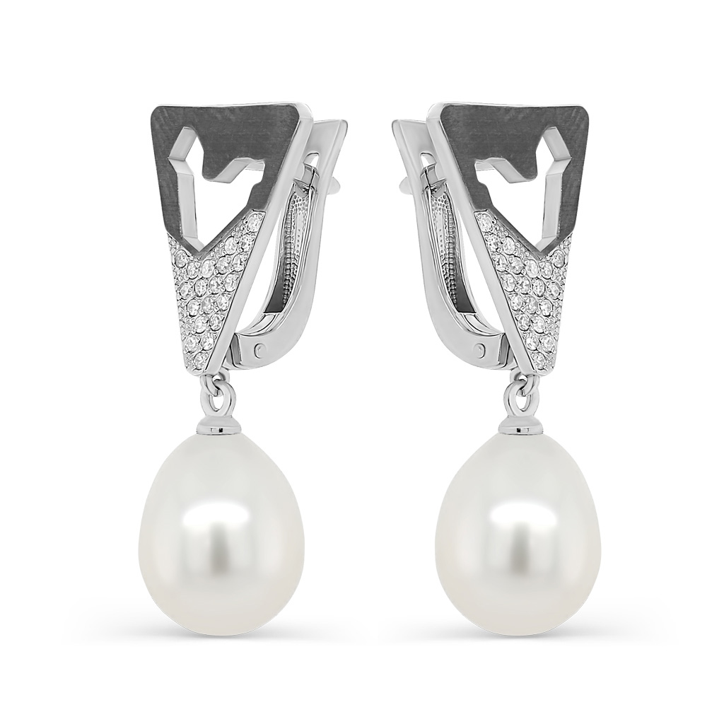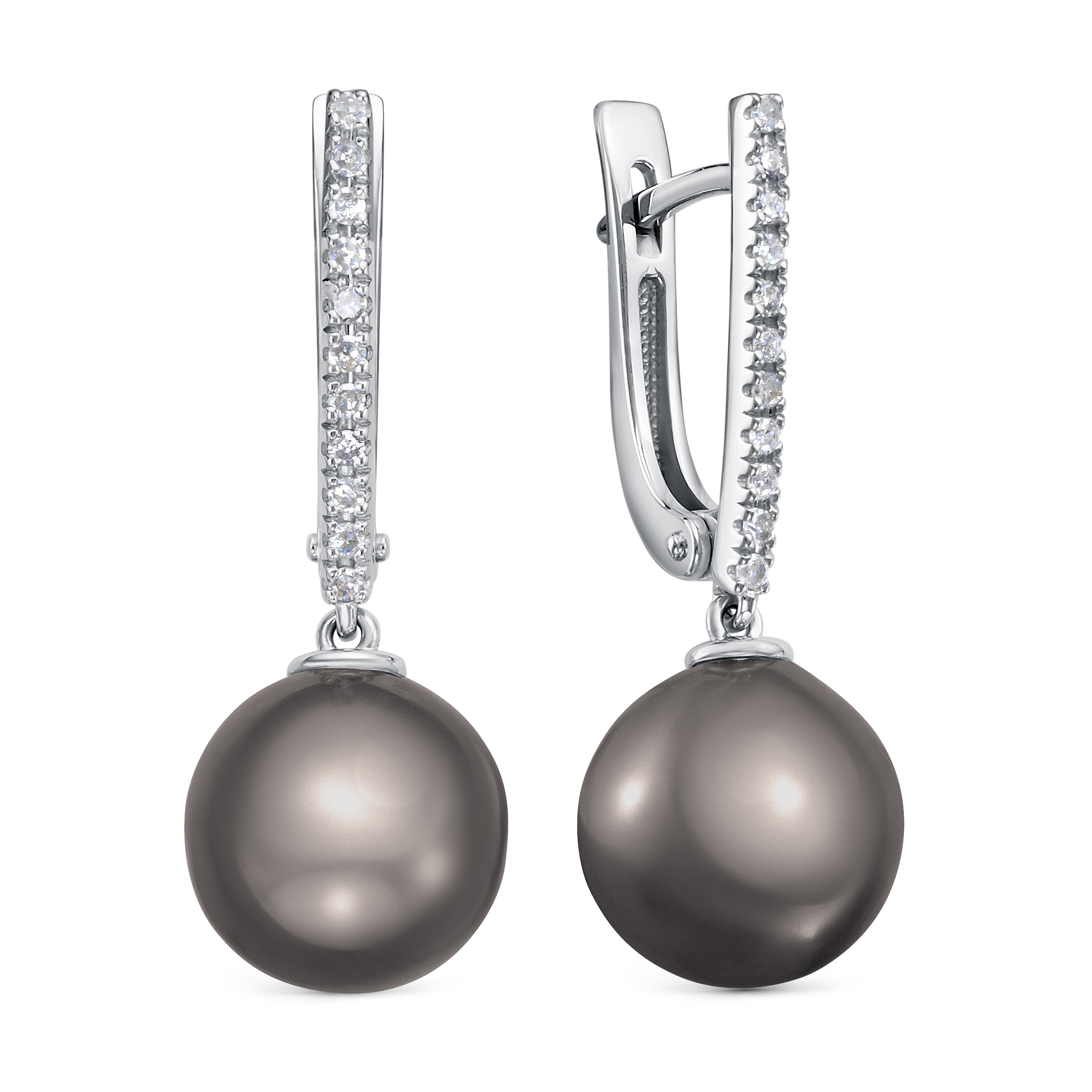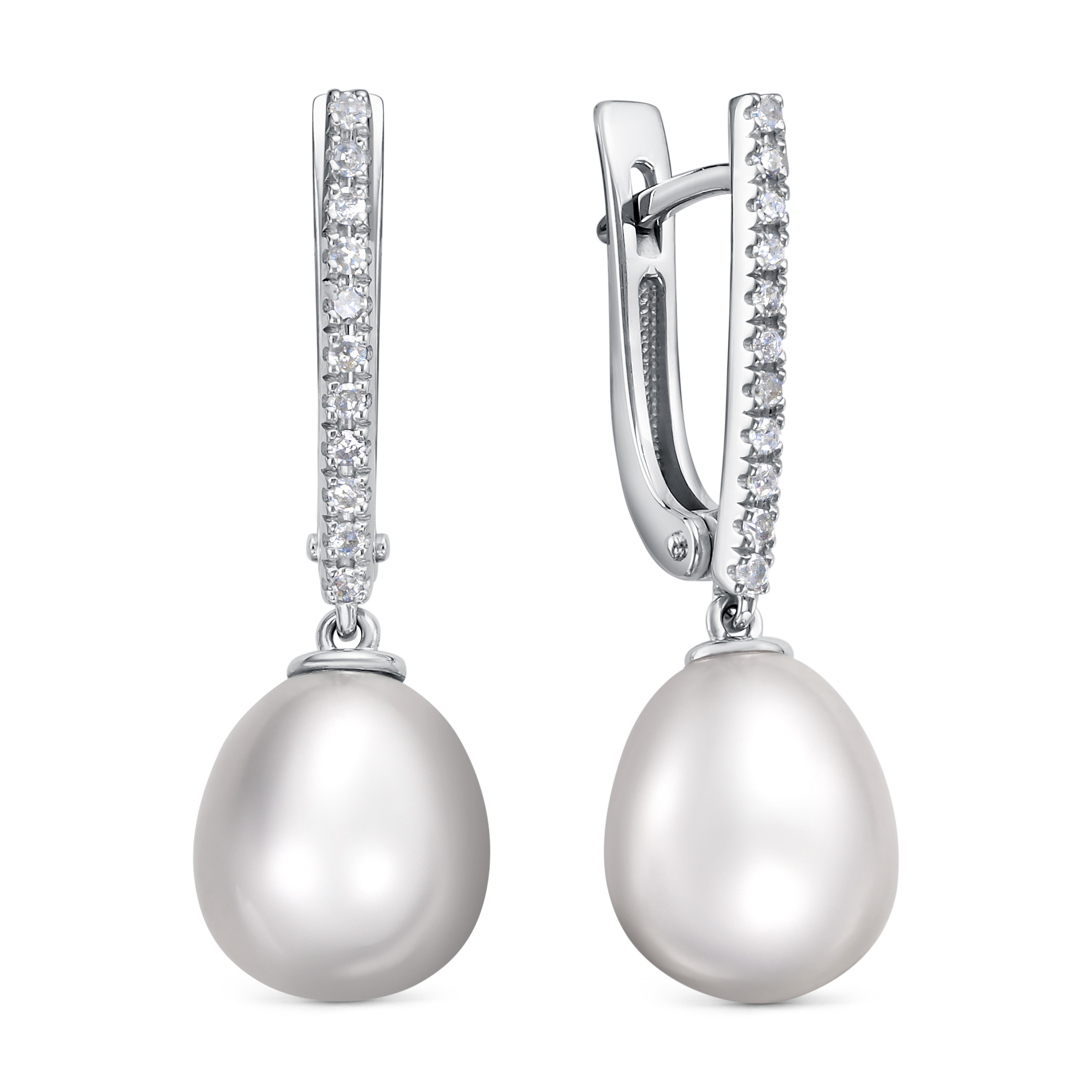 Серьги с английским замком из белого золота с бриллиантами и жемчугами