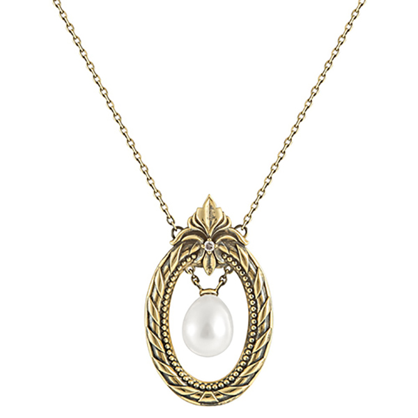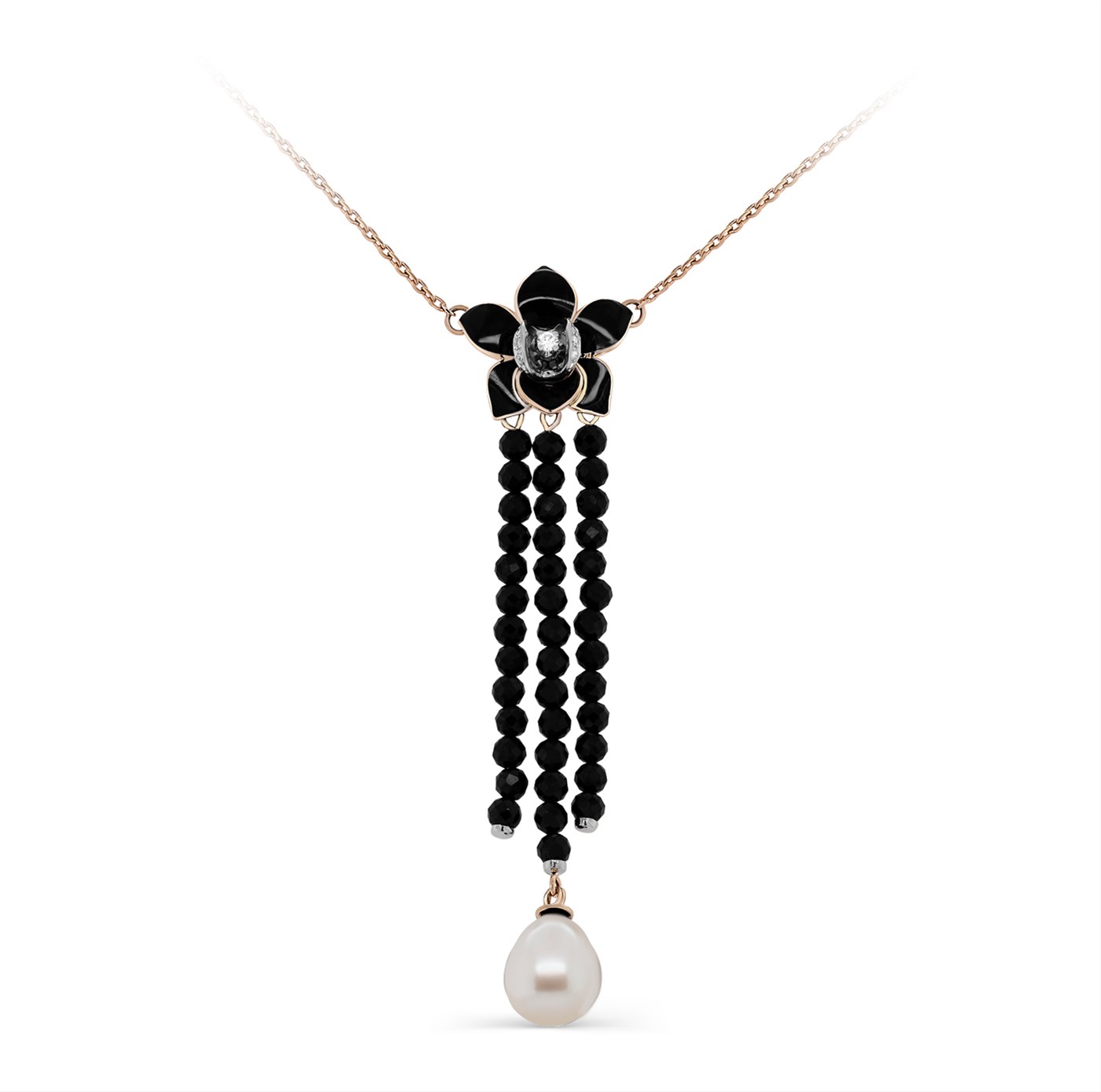 Подвеска из желтого золота с бриллиантами, жемчугом