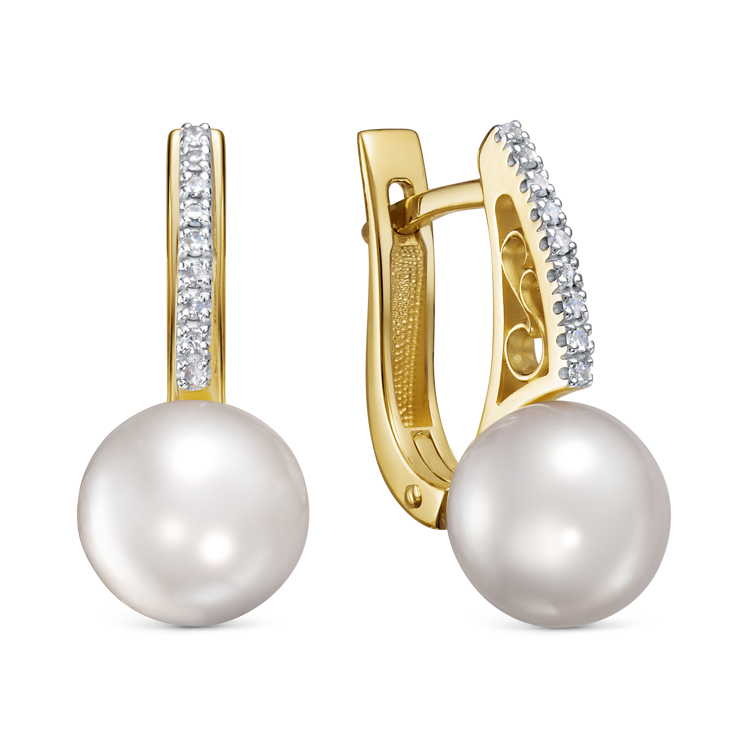 Серьги с английским замком из красного золота с бриллиантами, жемчугами