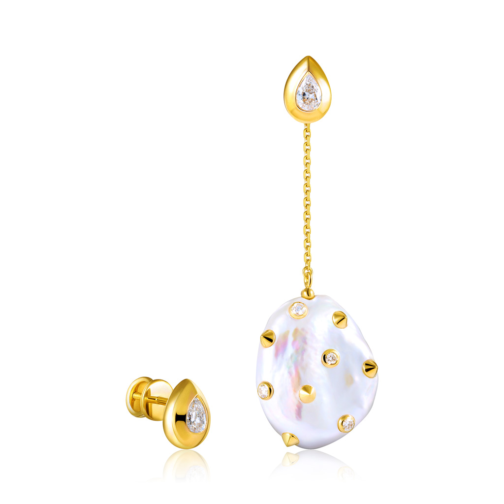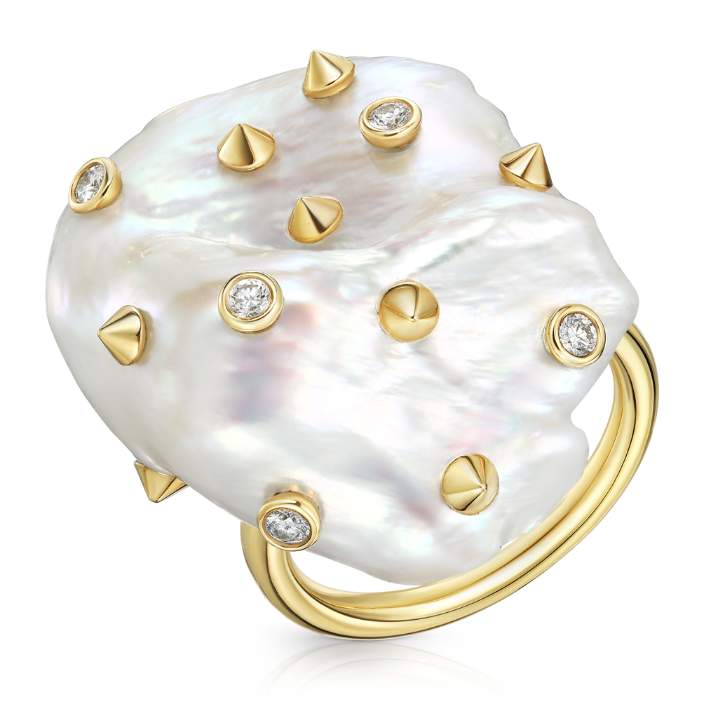 Кольцо из желтого золота с барочным жемчугом и бриллиантами