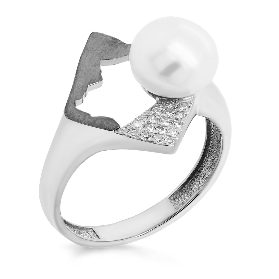 Кольцо из белого золота с бриллиантами, сапфирами и жемчугом