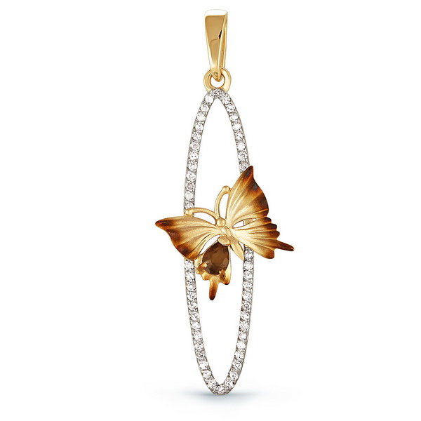Подвеска из желтого золота с бриллиантами, раухтопазом