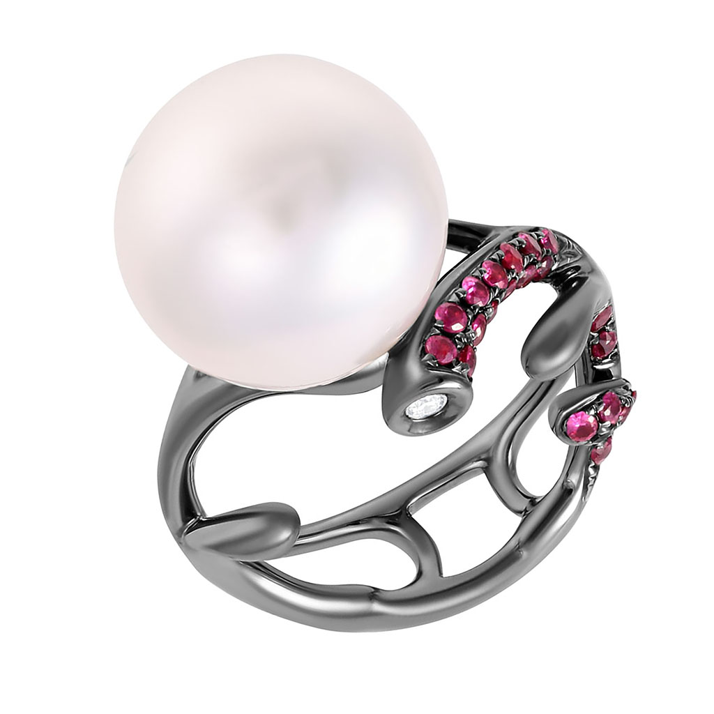 Подвеска из желтого золота с жемчугом, бриллиантом