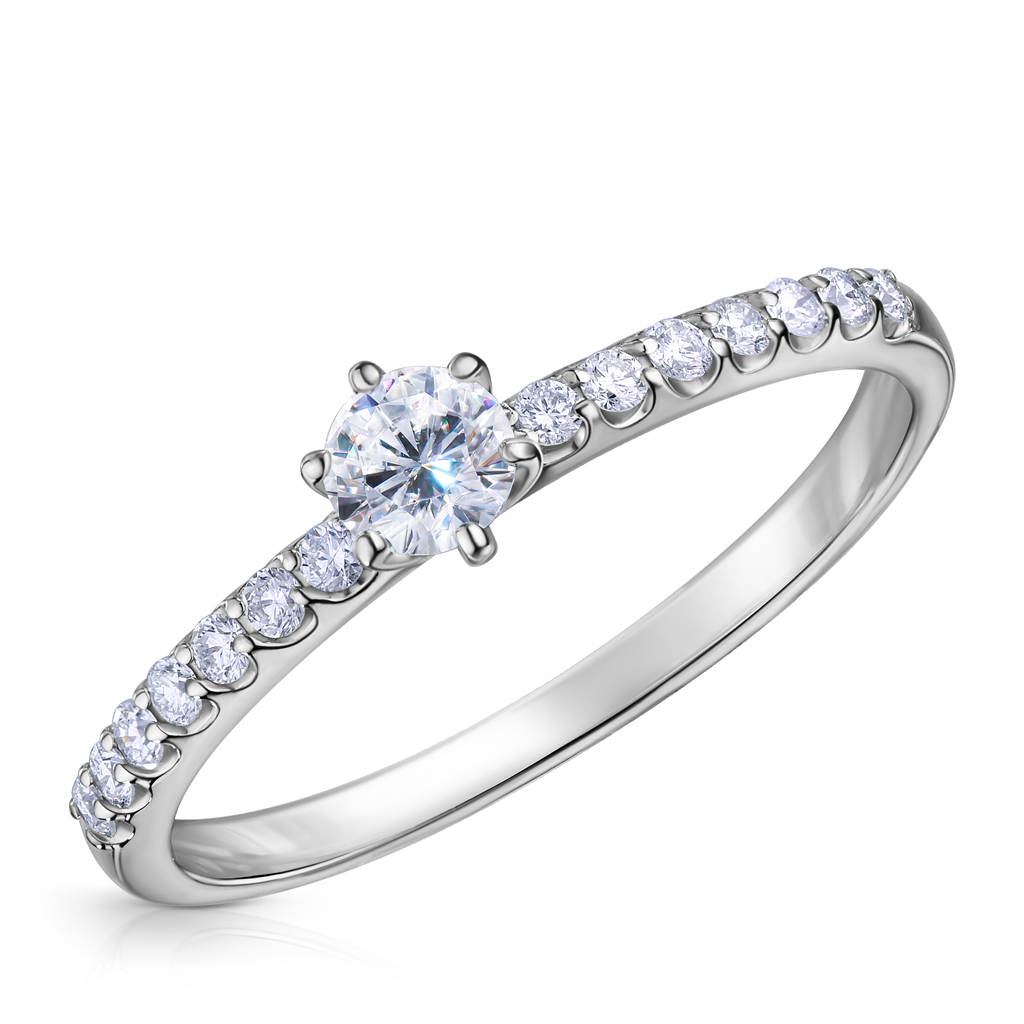 Кольцо помолвочное из белого золота с бриллиантами