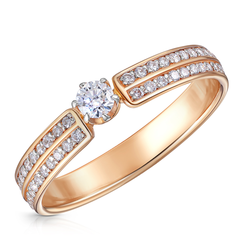 Кольцо помолвочное из красного золота с бриллиантами