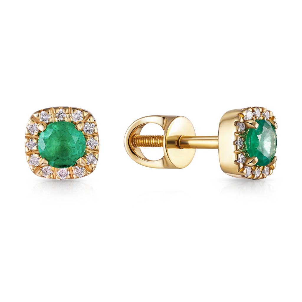 Пусеты из желтого золота с сапфирами и бриллиантами