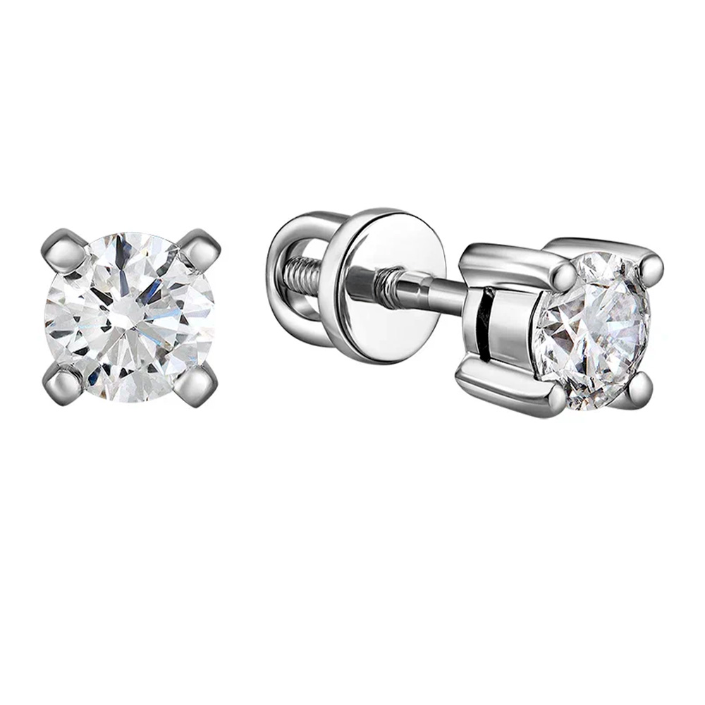 Пусеты из белого золота с бриллиантами, плетение якорное