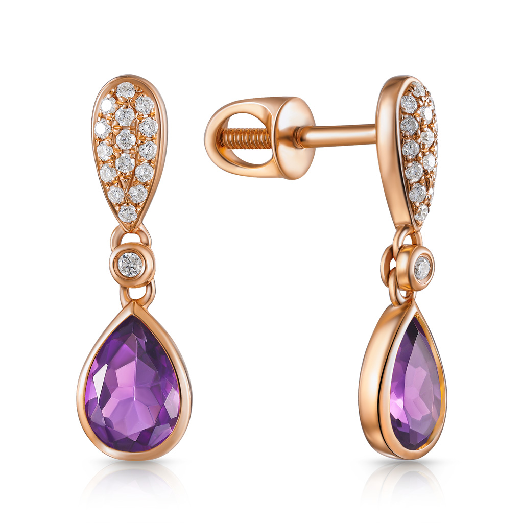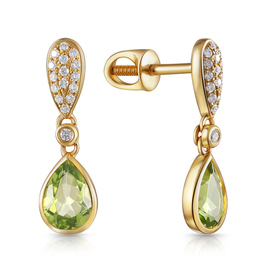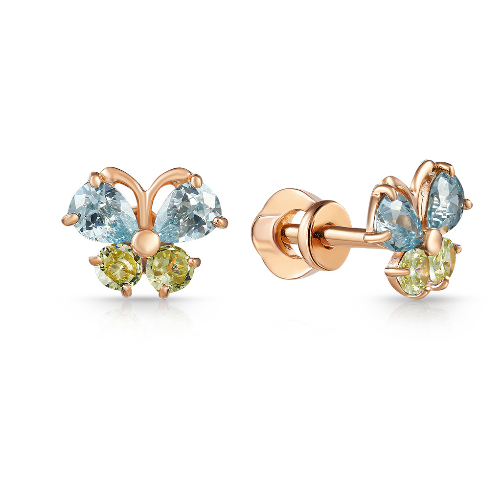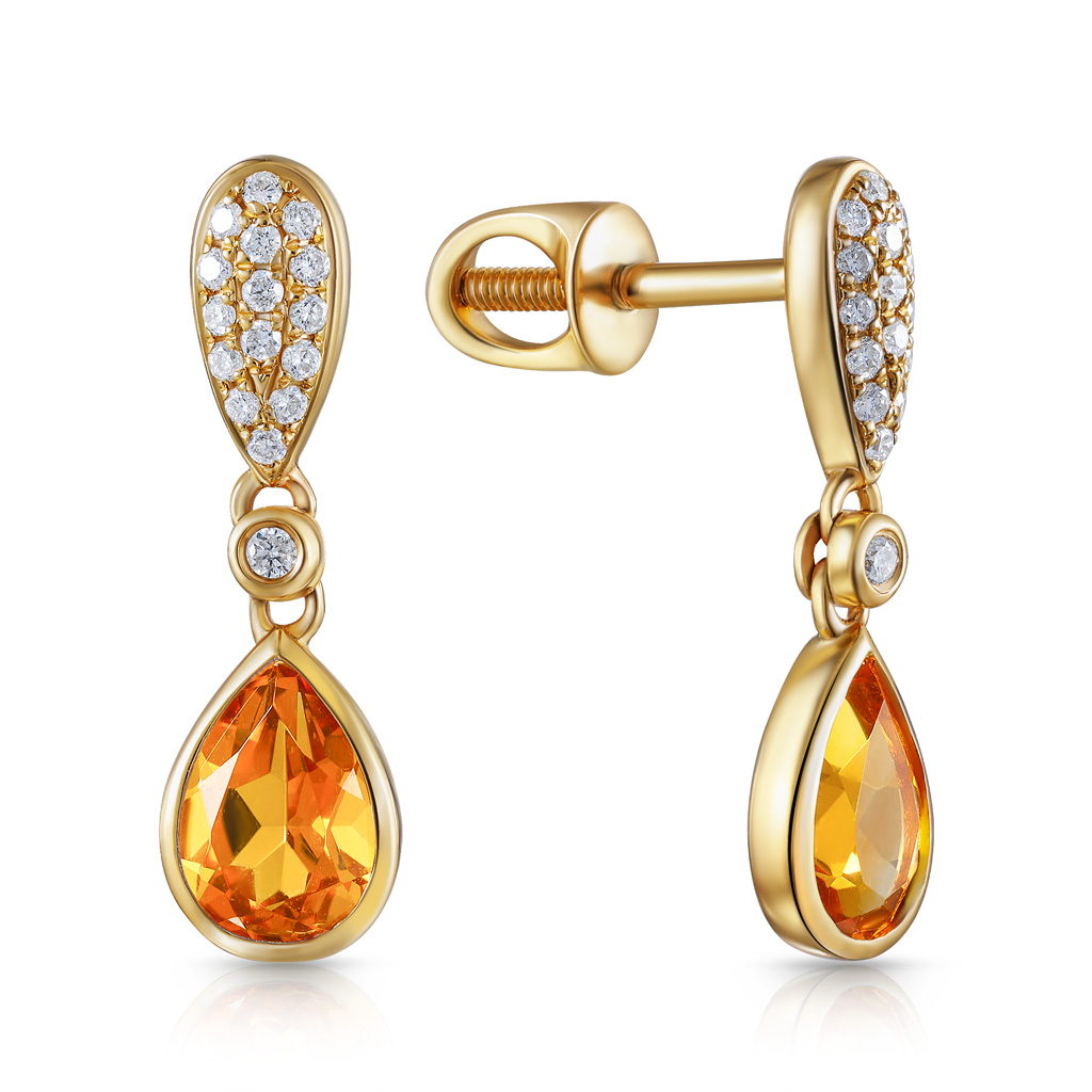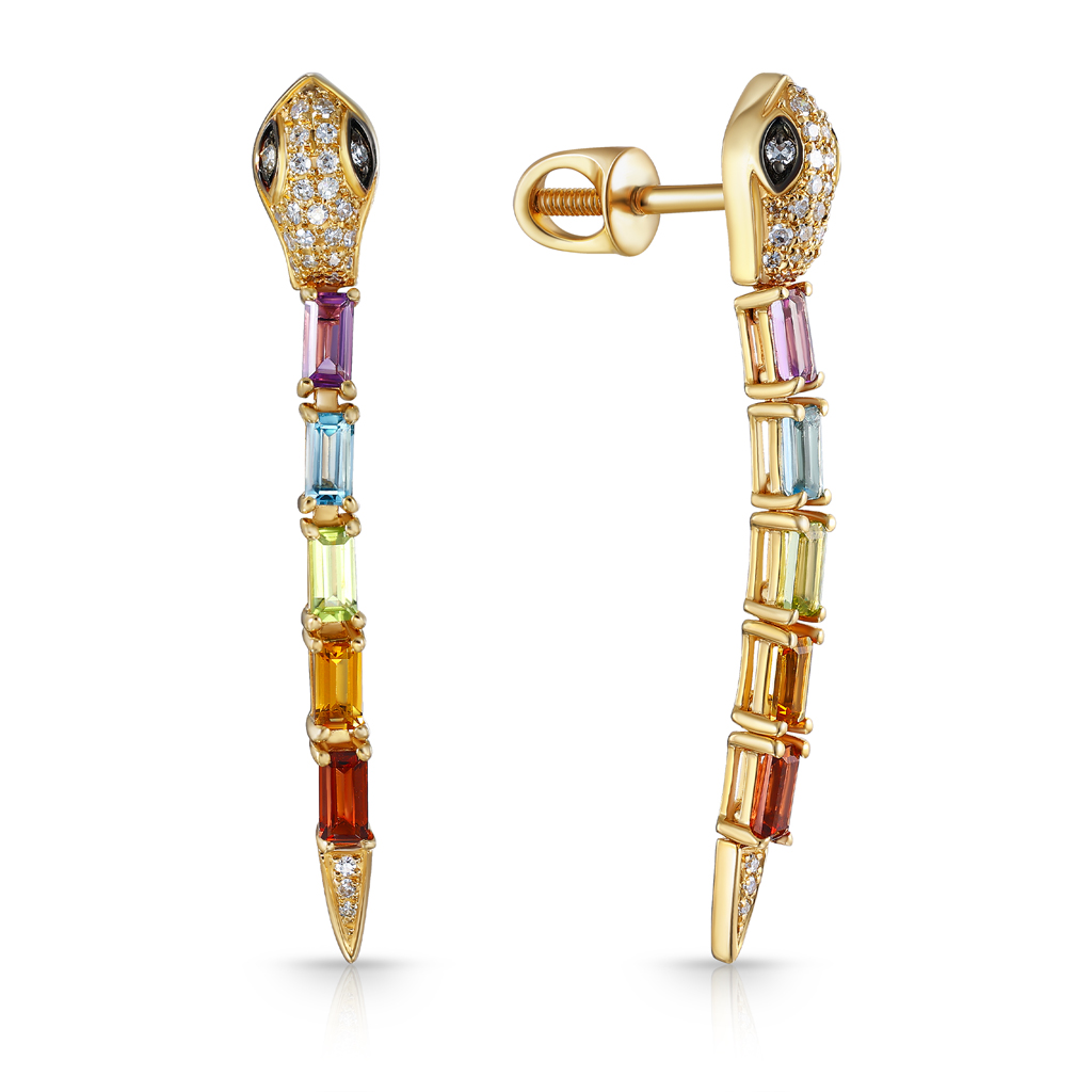 Серьги-пусеты с гранатом, хризолитами, цитринами, топазами, аметистами, бриллиантами из желтого золота