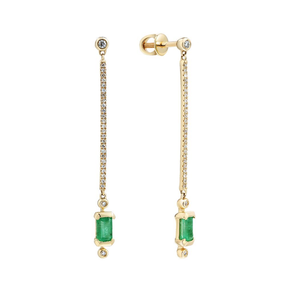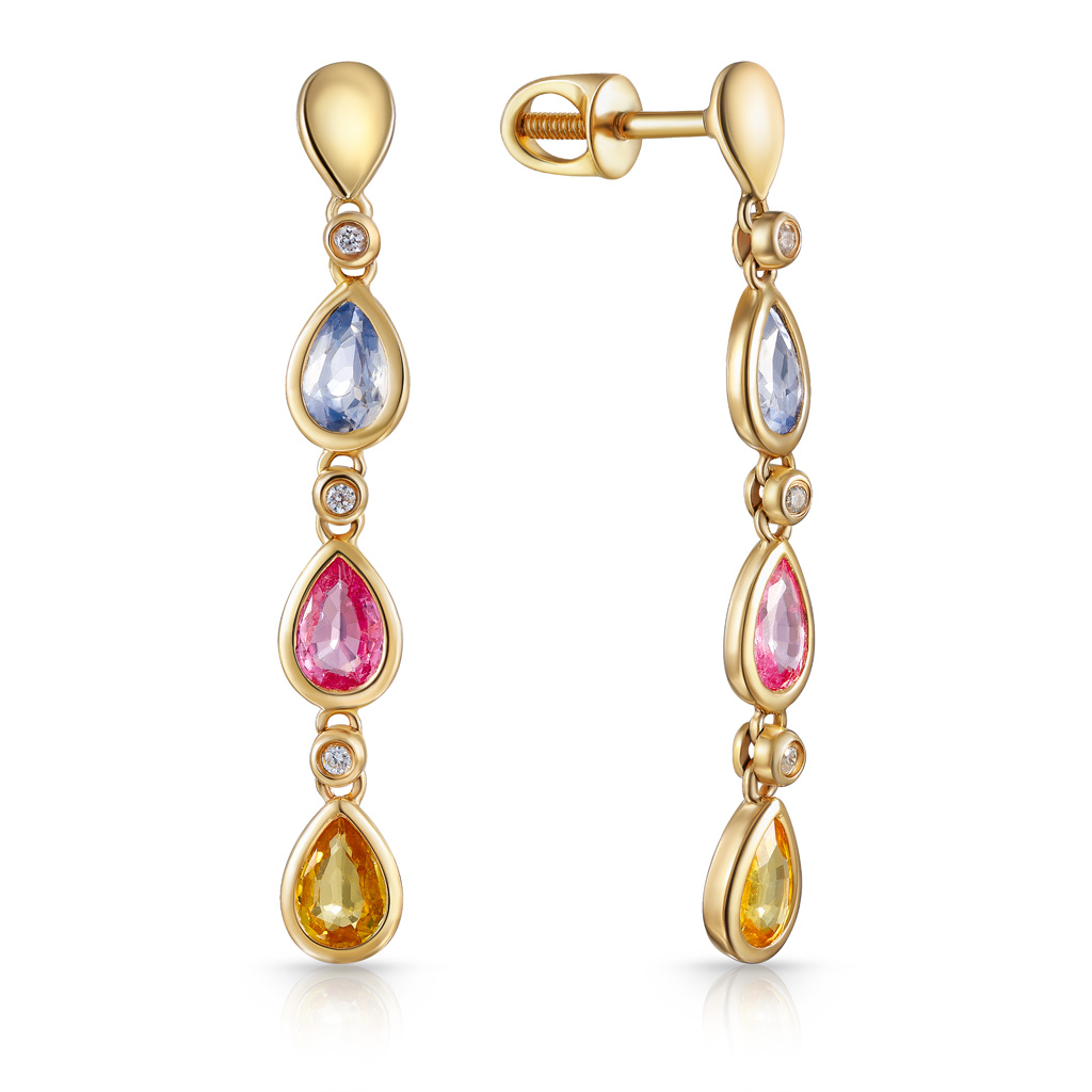 Пусеты из желтого золота с сапфирами и бриллиантами