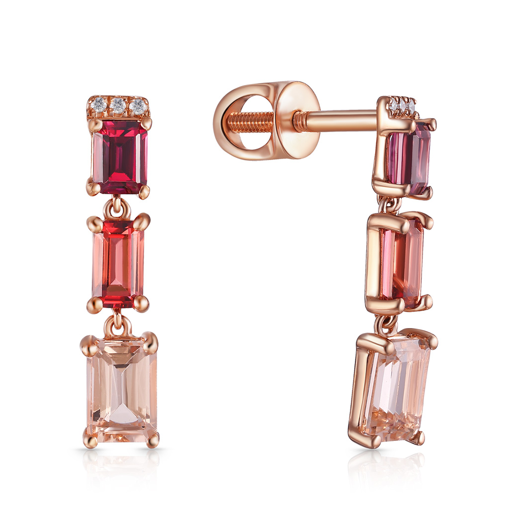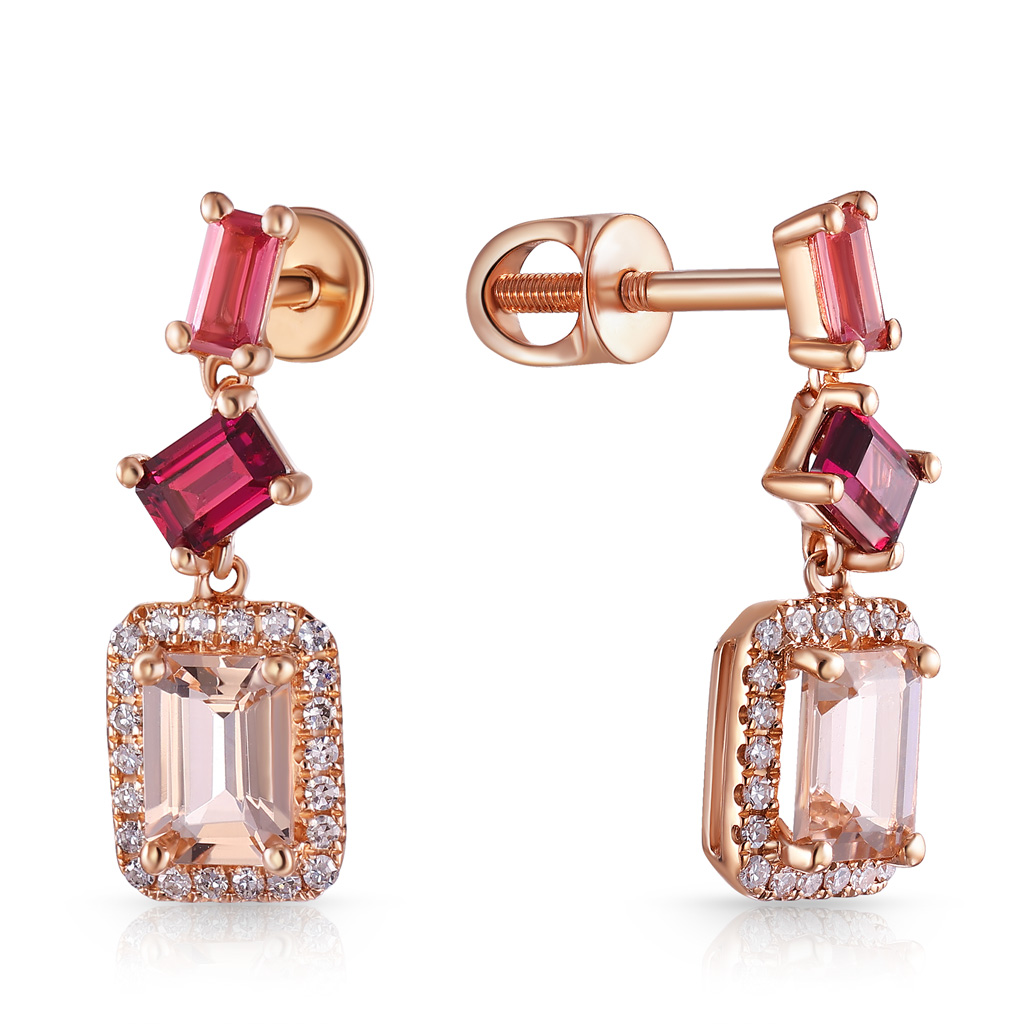 Пусеты из красного золота с аметистами, бриллиантами