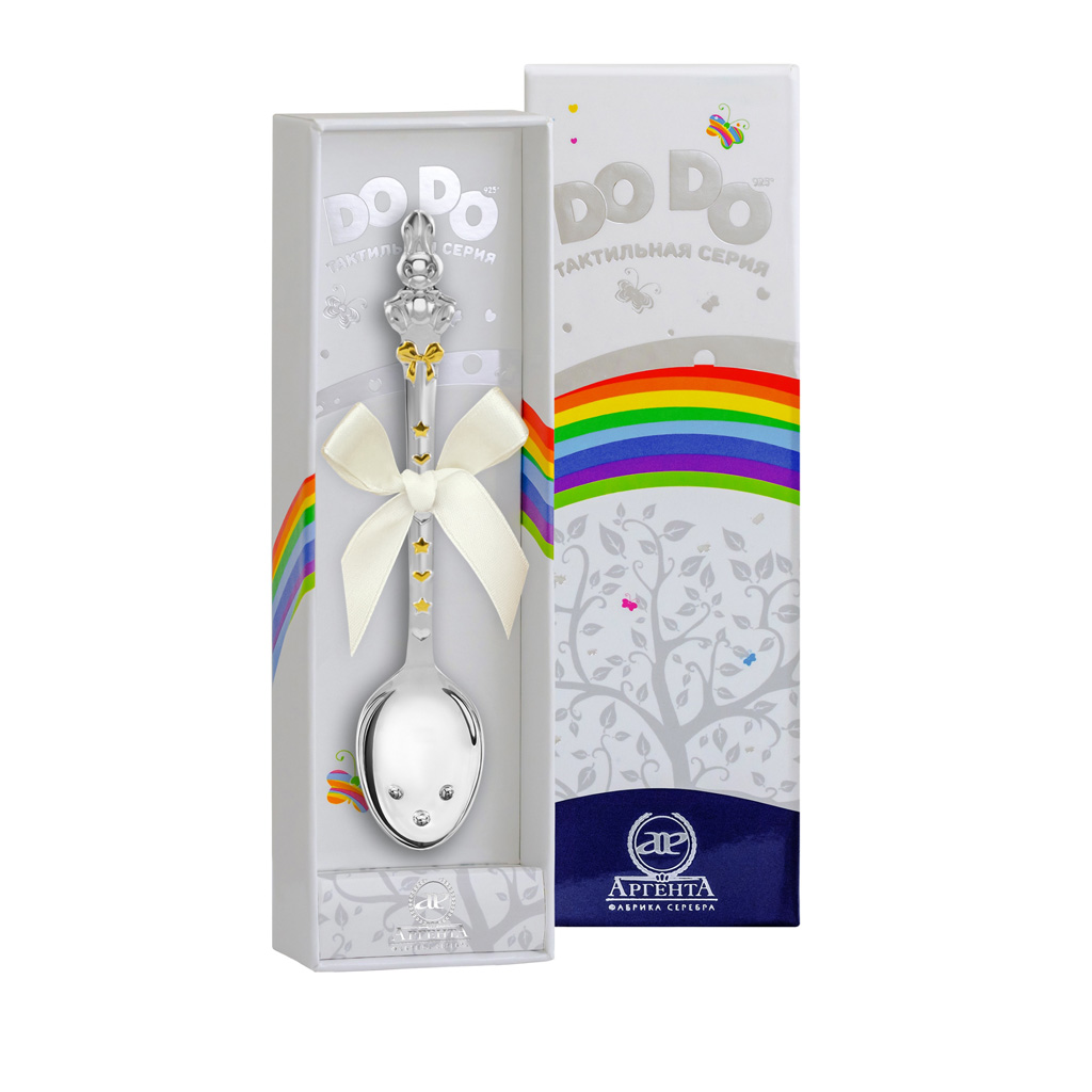 Ложка детская из серебра с золочением, эмалью