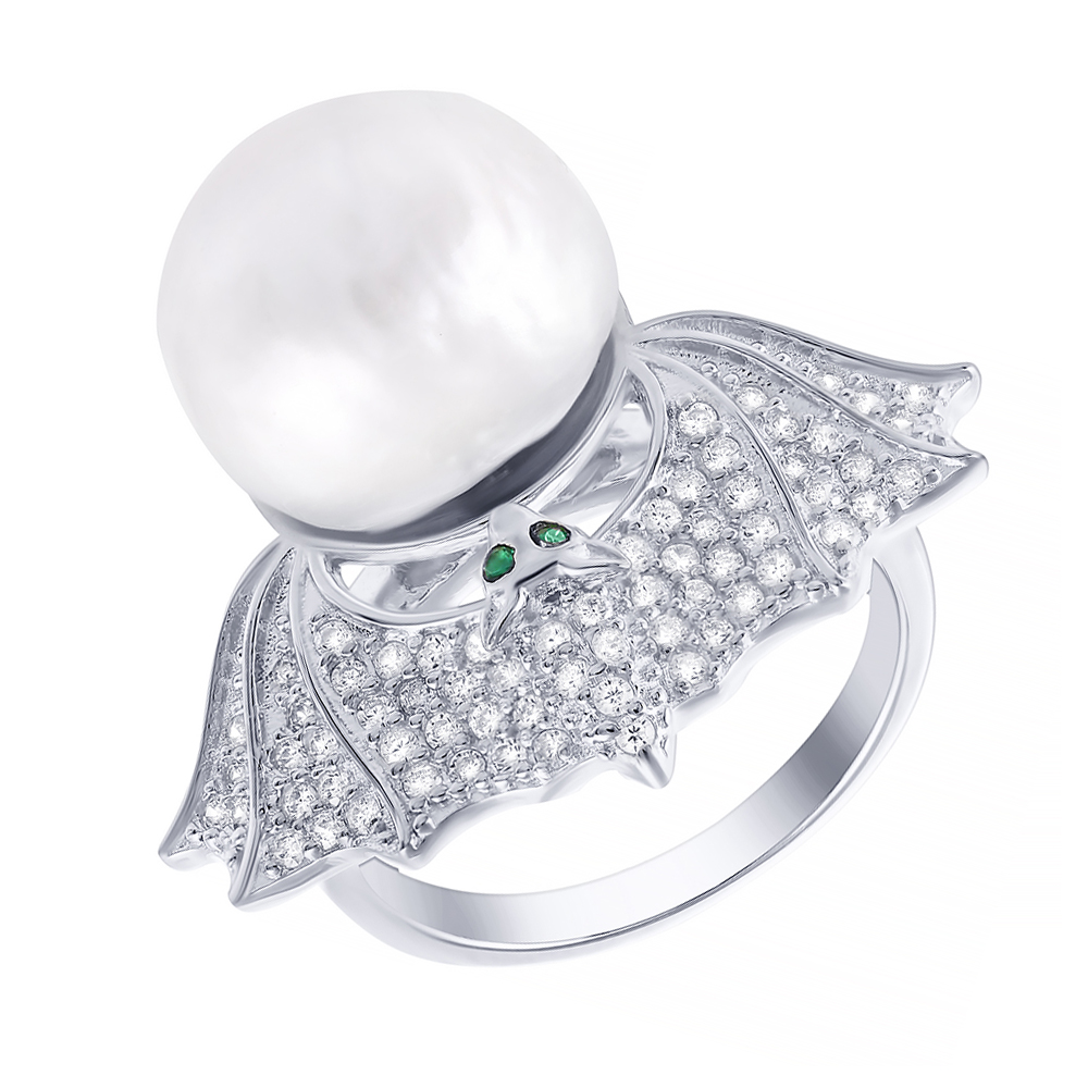 Кольцо из серебра с перламутром, фианитами