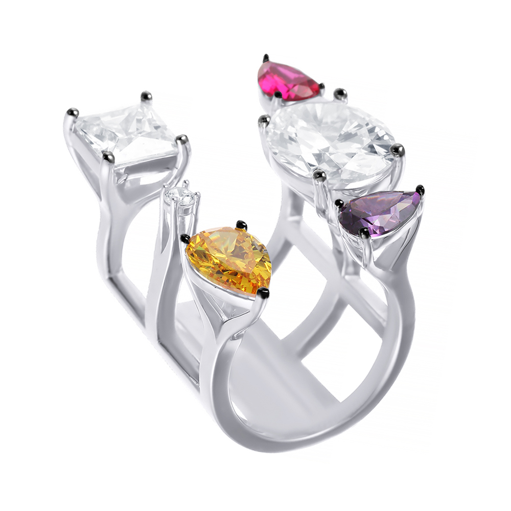 Кольцо из серебра с фианитами, родолитом