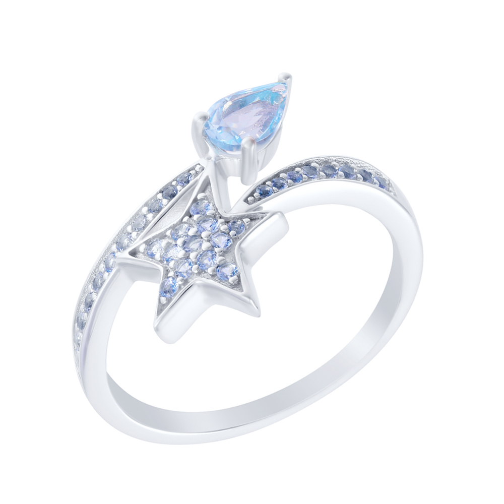 Кольцо из серебра с топазом, фианитом