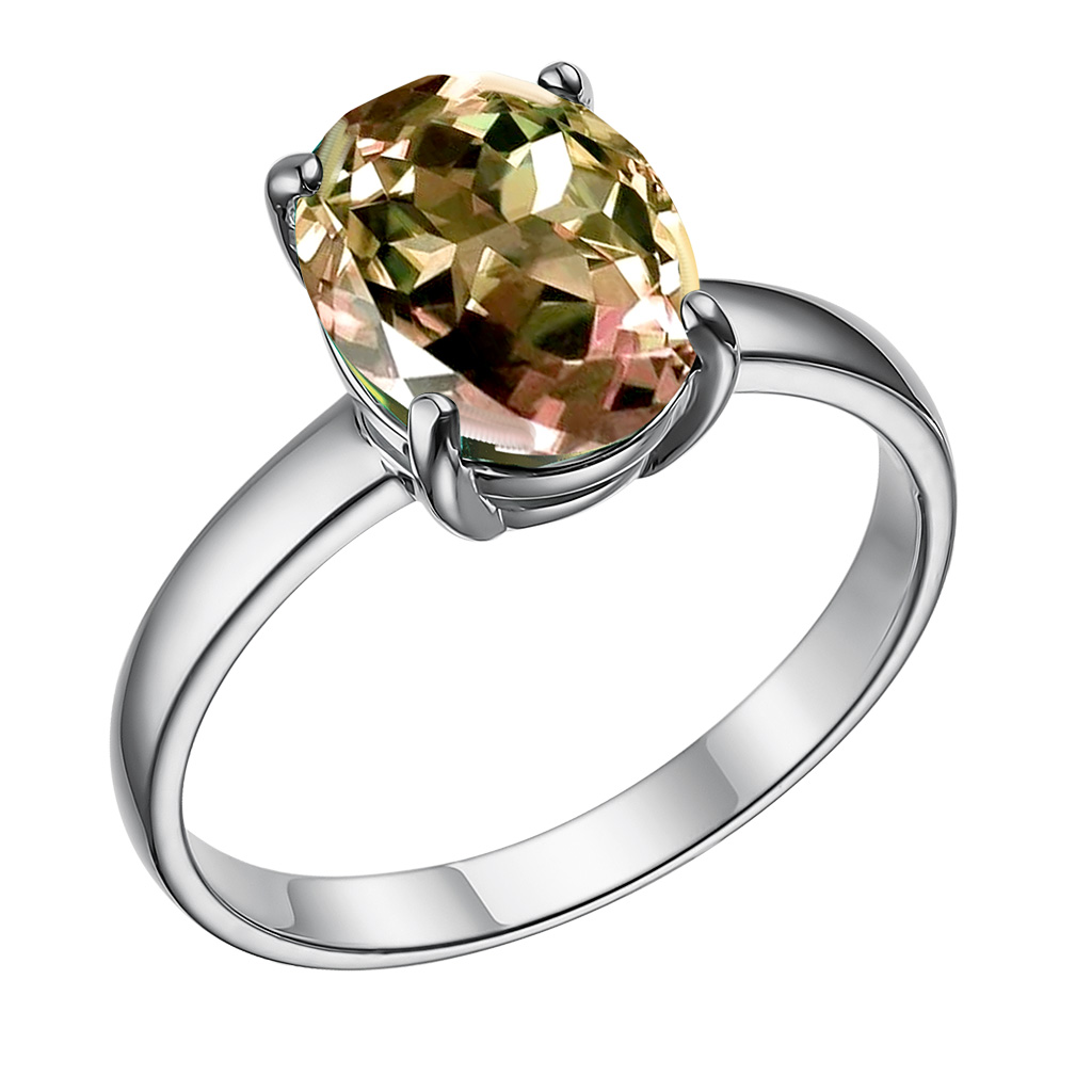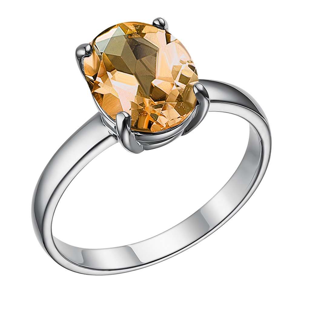 Кольцо из серебра с кварцем, фианитом