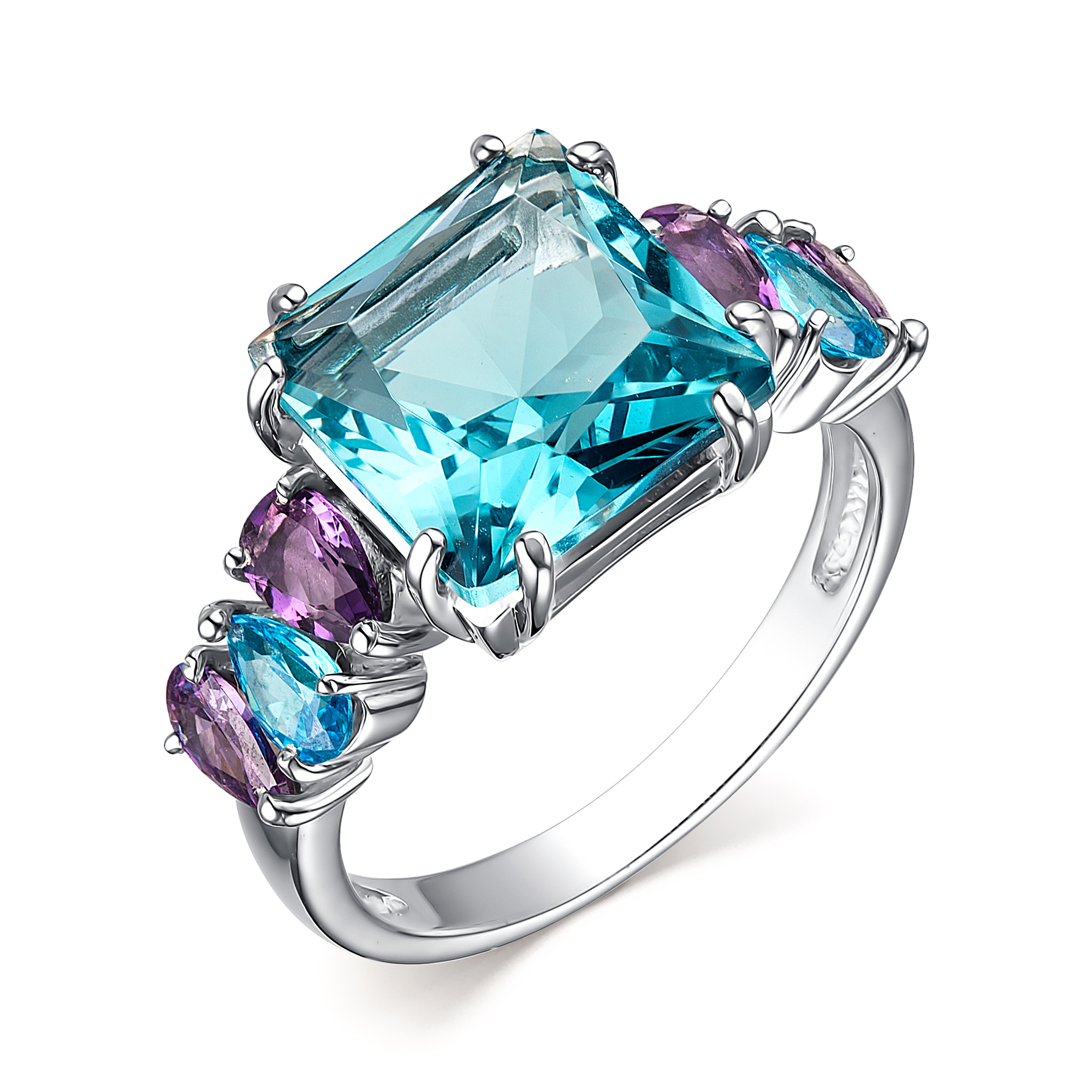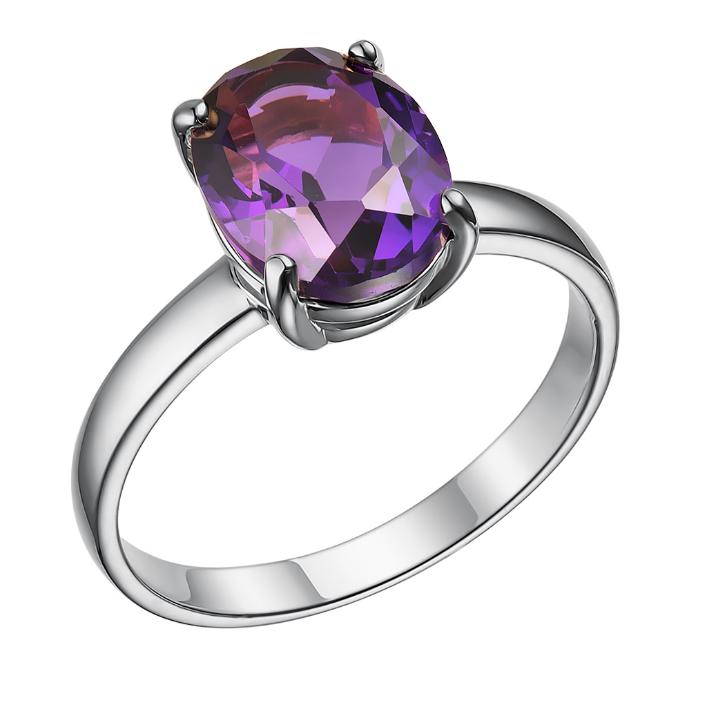 Кольцо из серебра с аметистом, эмалью