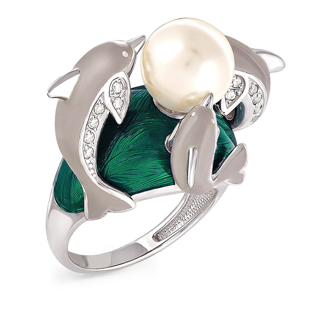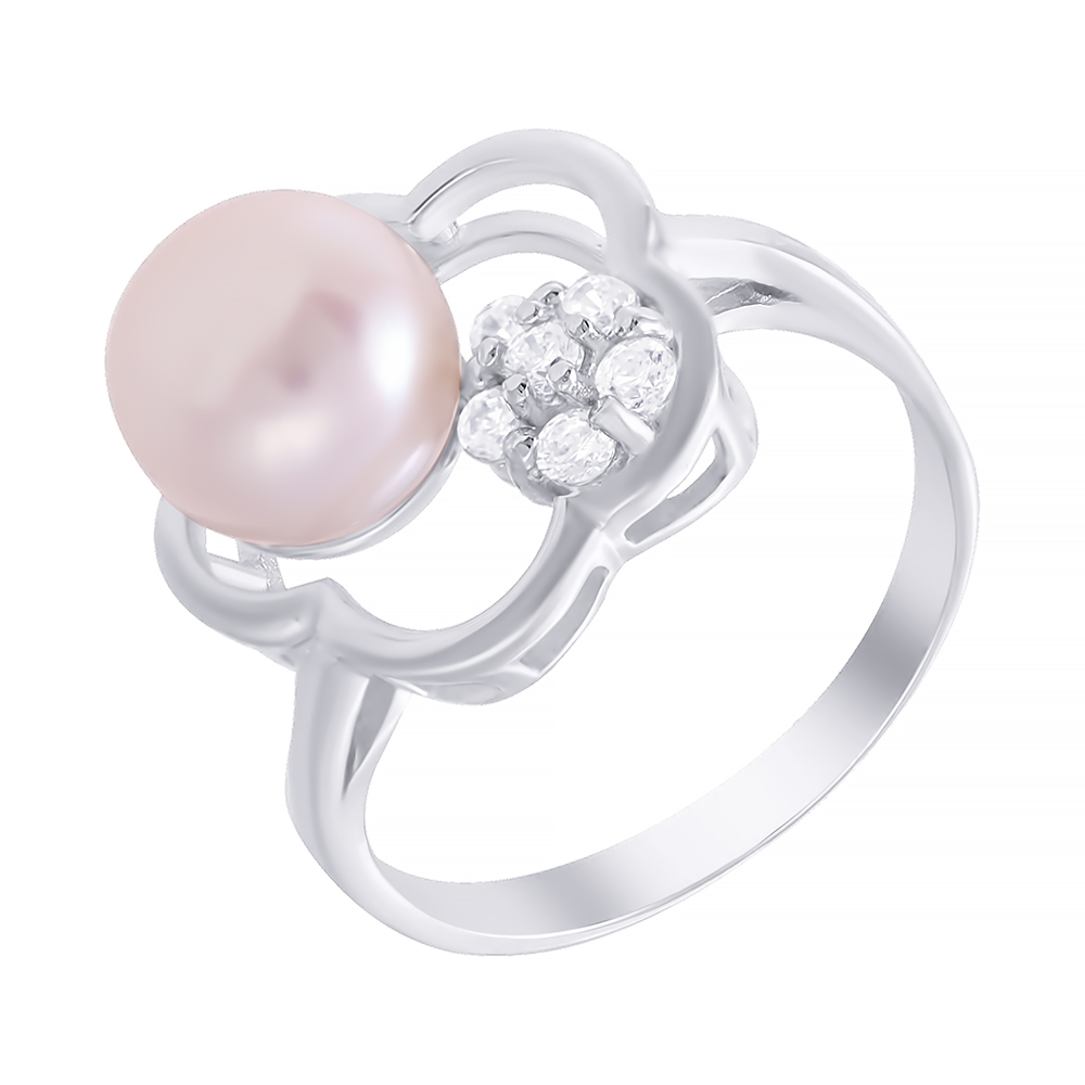 Кольцо из серебра с фианитом, жемчугом