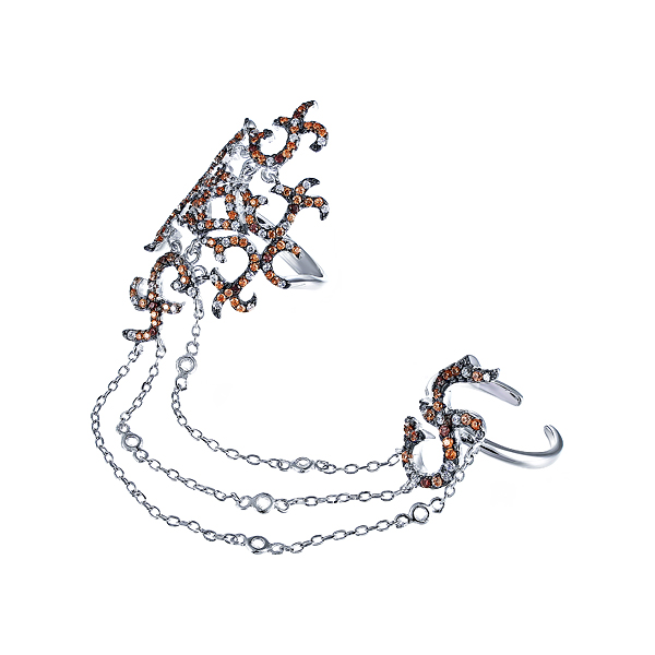 Кольцо из серебра с хризолитами и фианитами и эмалью