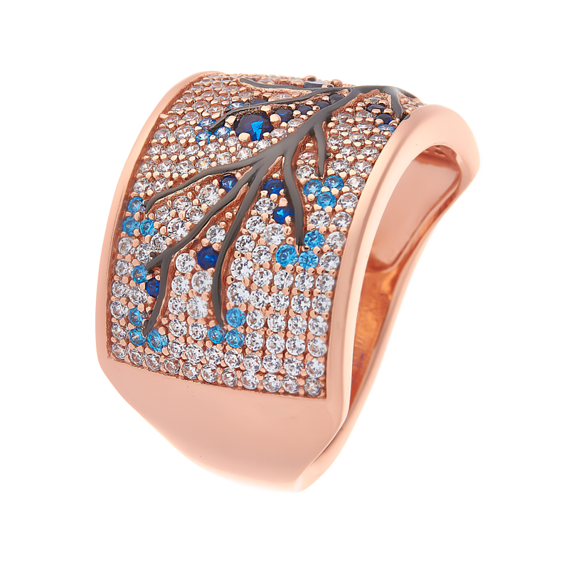Кольцо из серебра с фианитом и эмалью