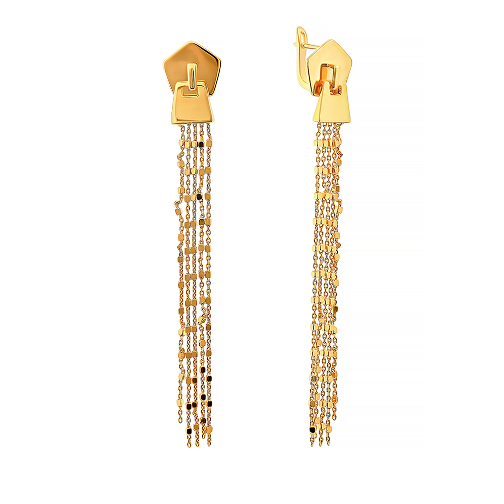 Серьги с французским замком из серебра с фианитом, корундом и золочением