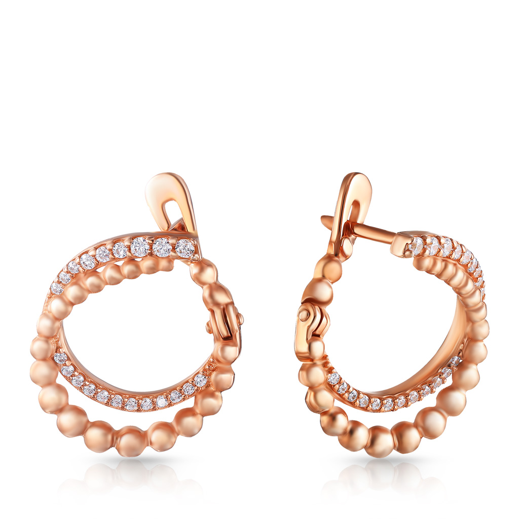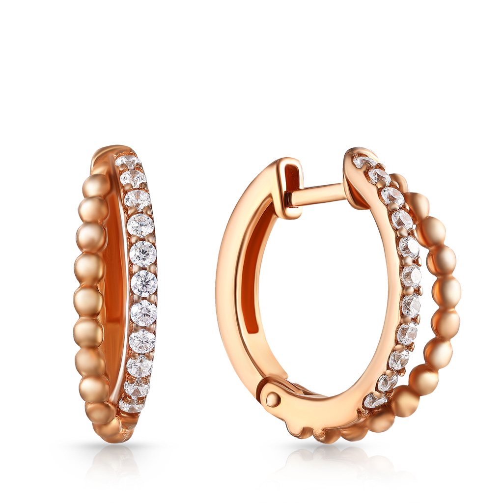 Серьги с английским замком из серебра с керамиками, фианитами