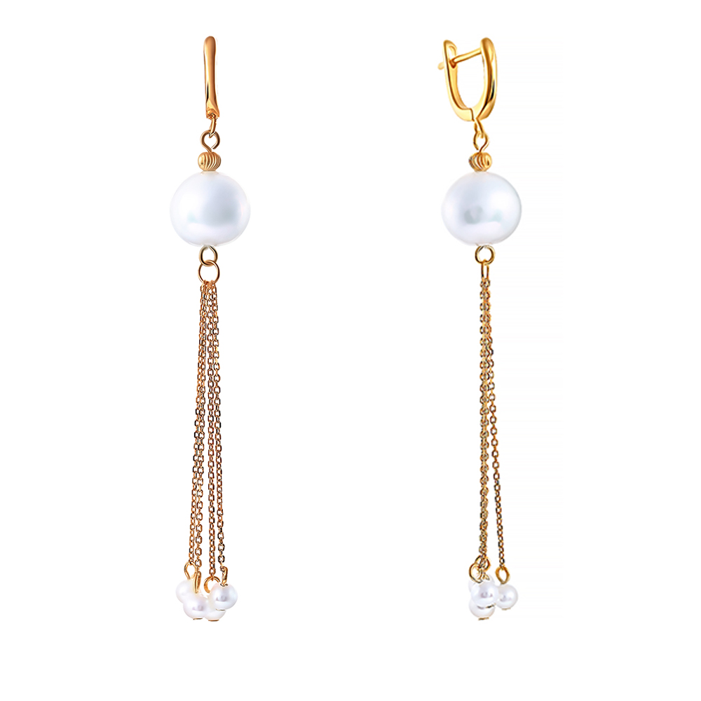 Серьги с английским замком из серебра с жемчугом, цирконием и золочением