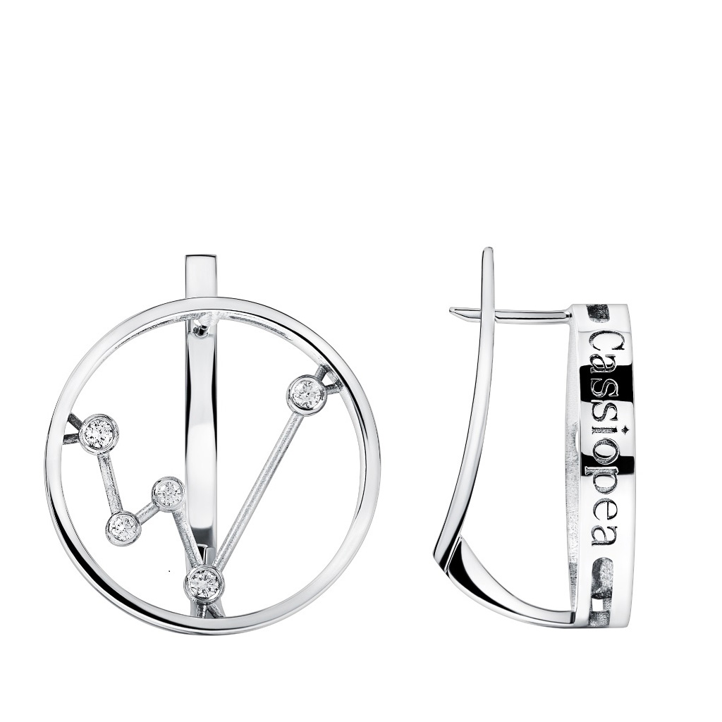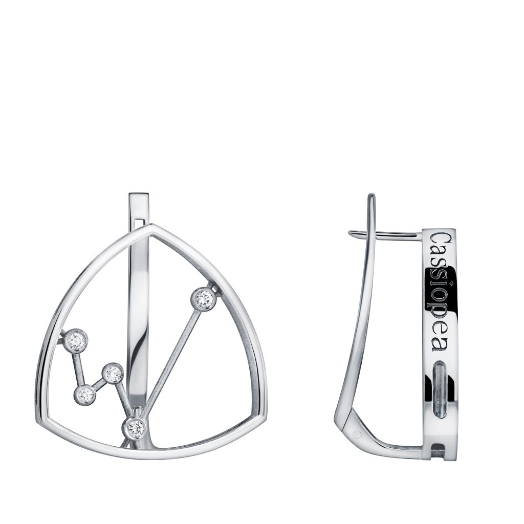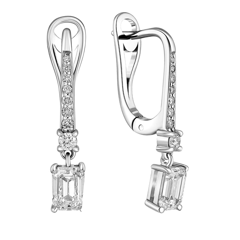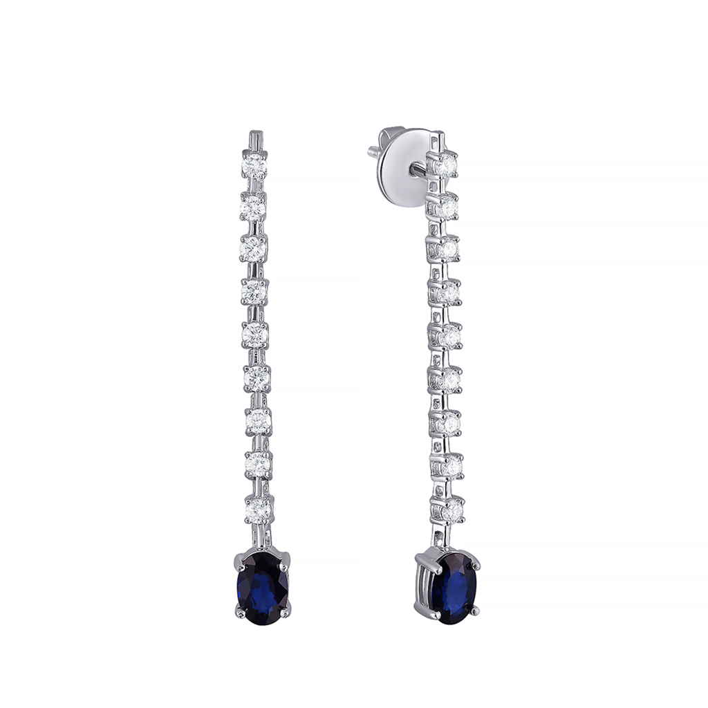 Серьги с английским замком из белого золота с шпинелями, бриллиантами
