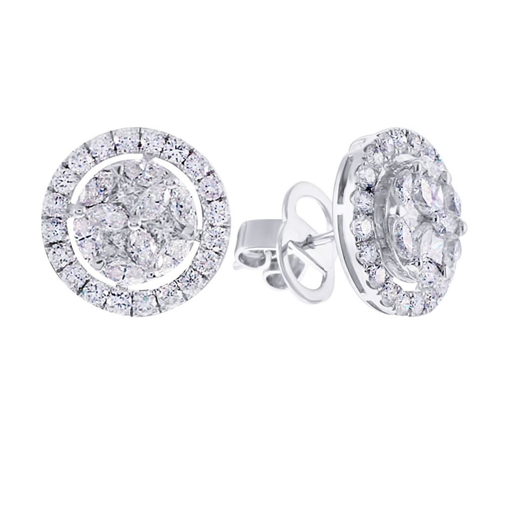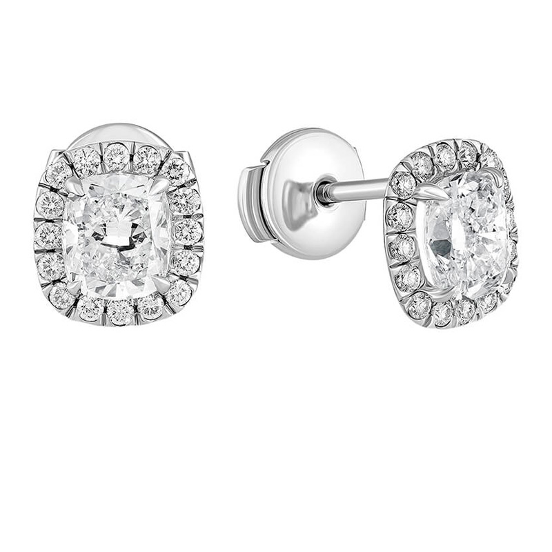 Асимметричные пусеты из белого золота с бриллиантами, перламутром