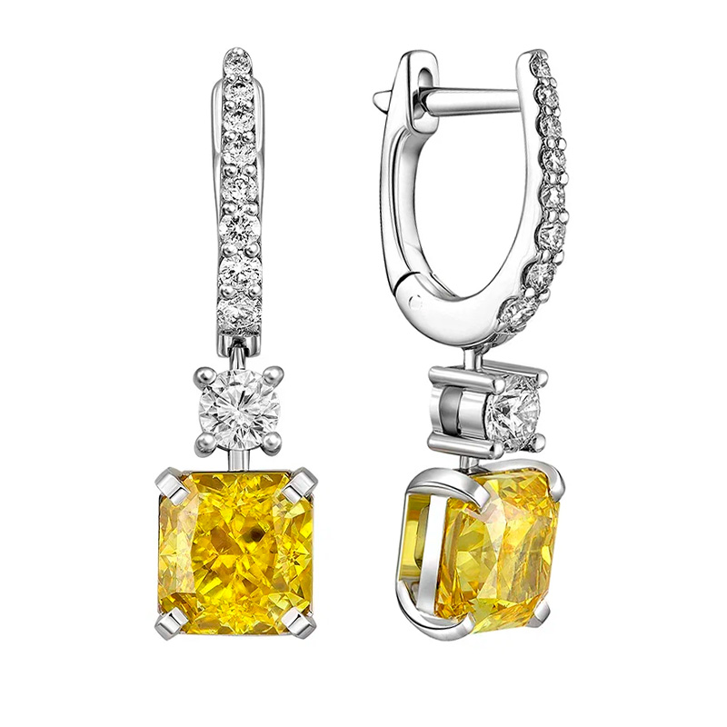 Серьги с английским замком из жёлтого золота с бриллиантами "груша"