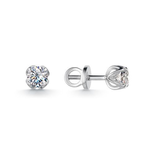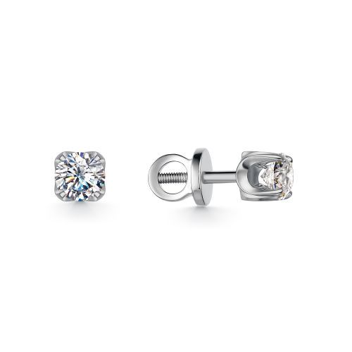 Серьги с английским замком из белого золота с перламутром, бриллиантами