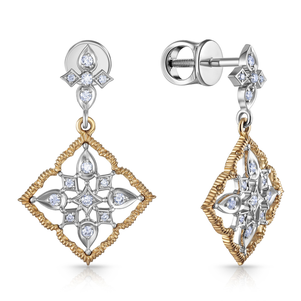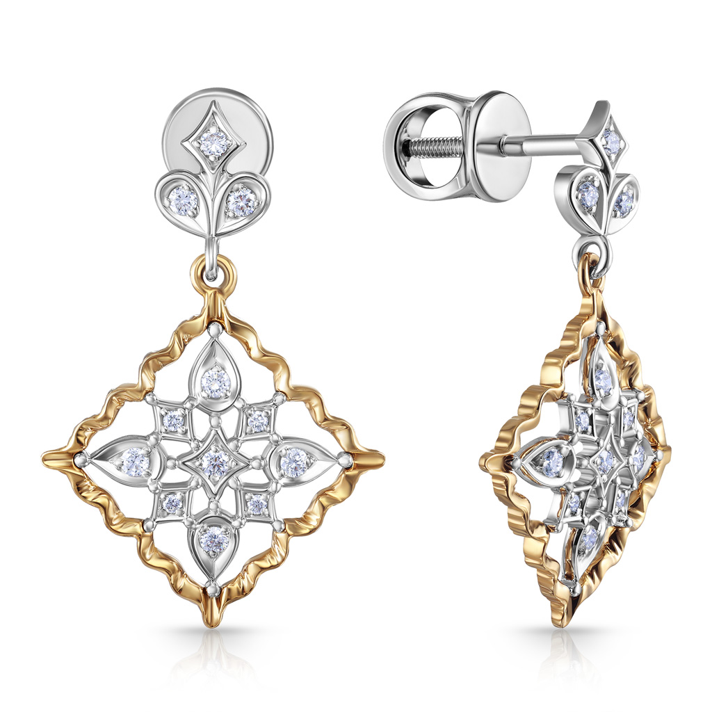 Серьги с английским замком из желтого золота с бриллиантами, финифтями