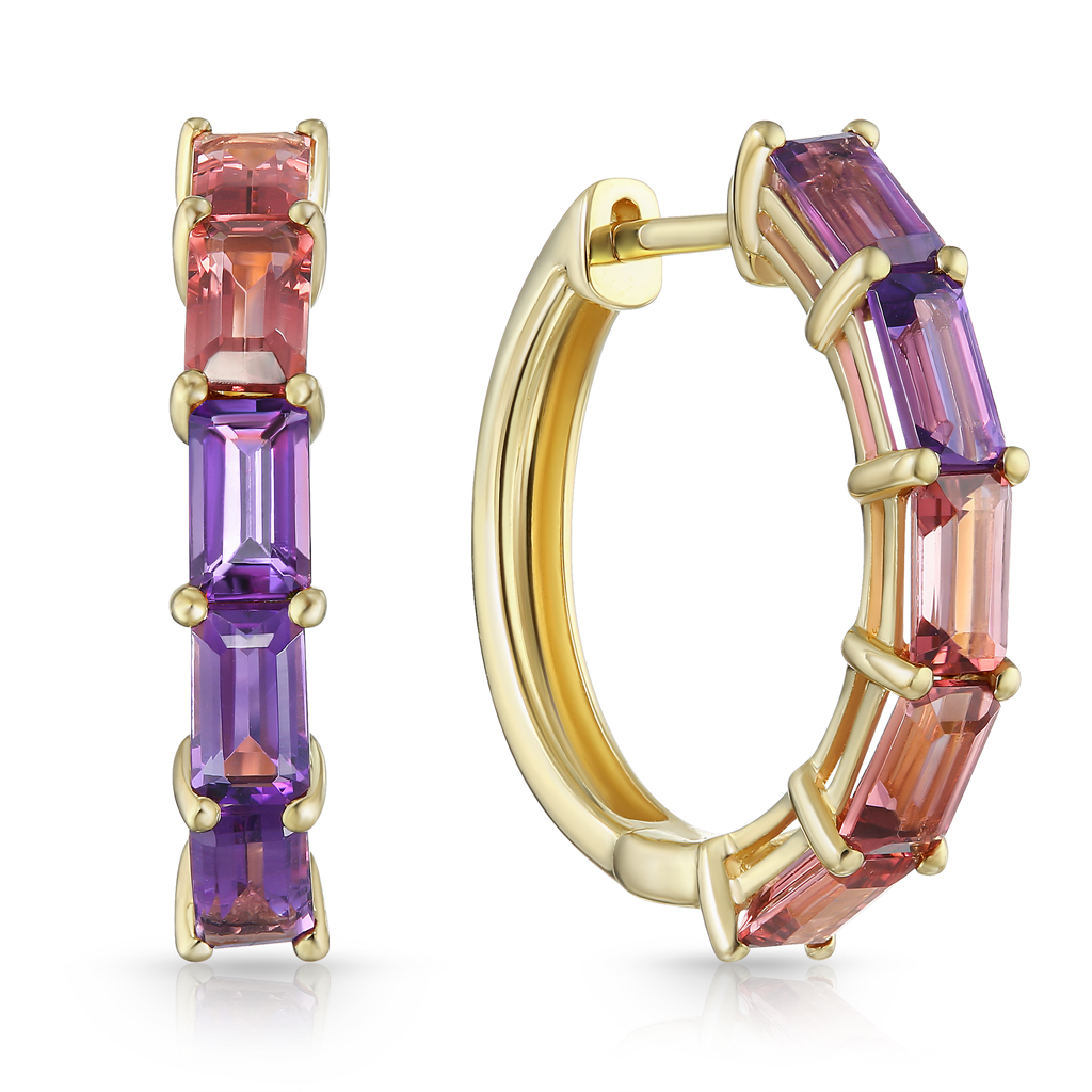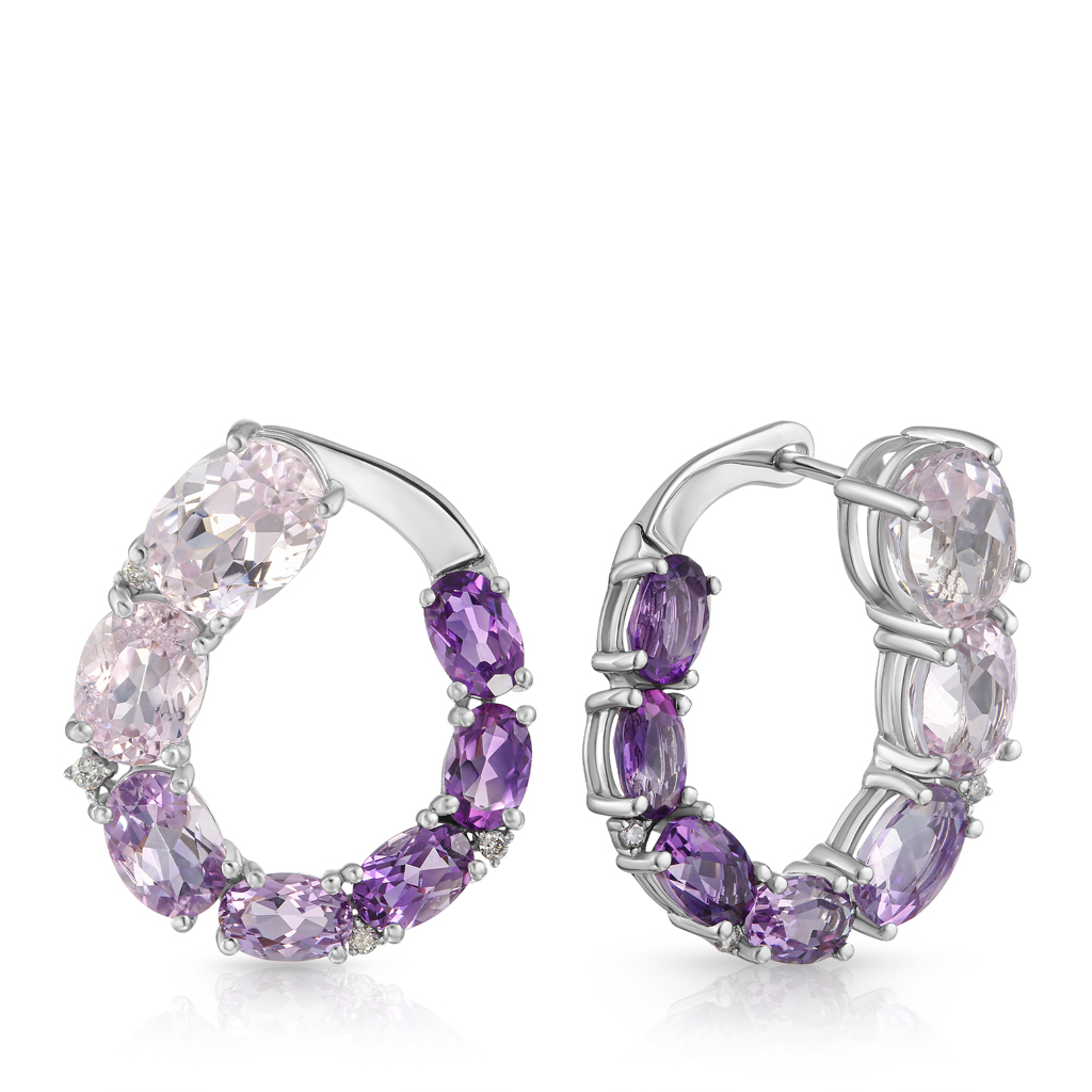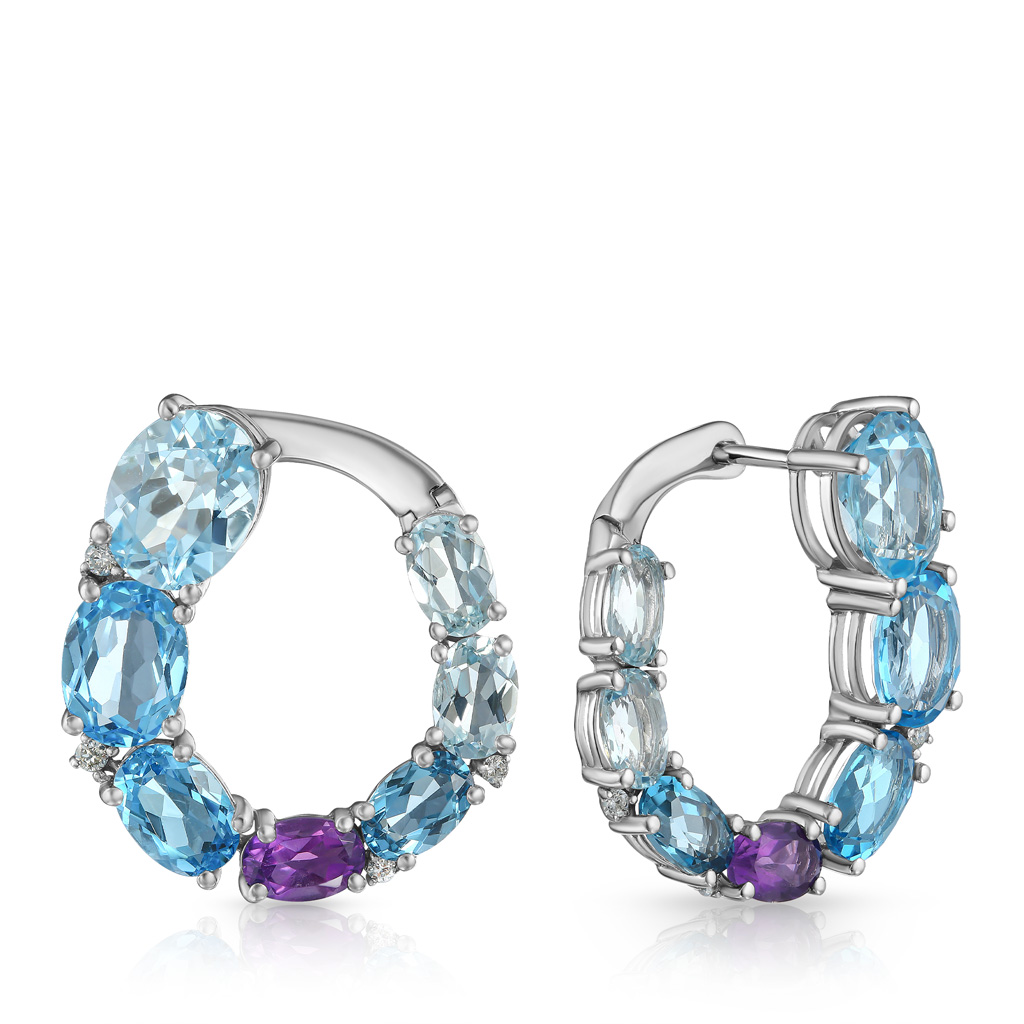 Серьги с аметистами, аквамаринами, топазами, бриллиантами с английским замком из белого золота