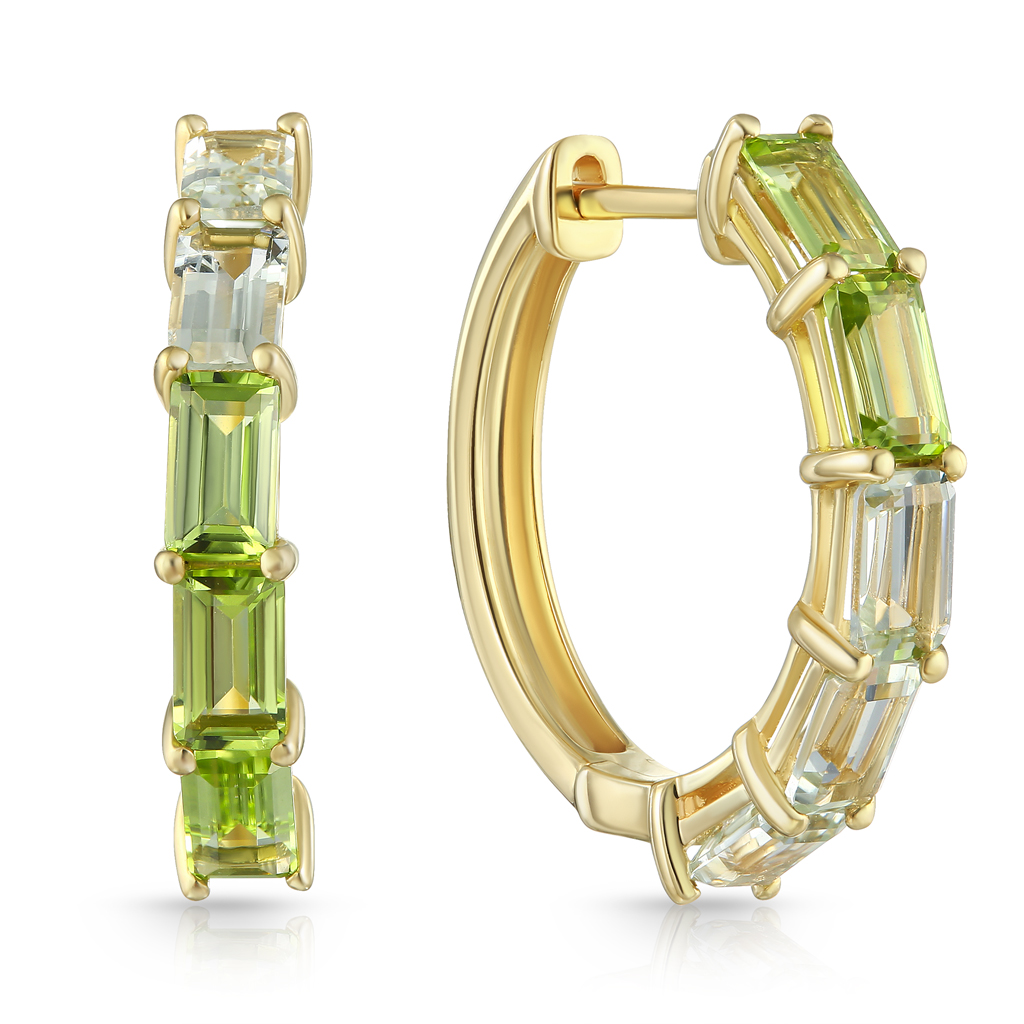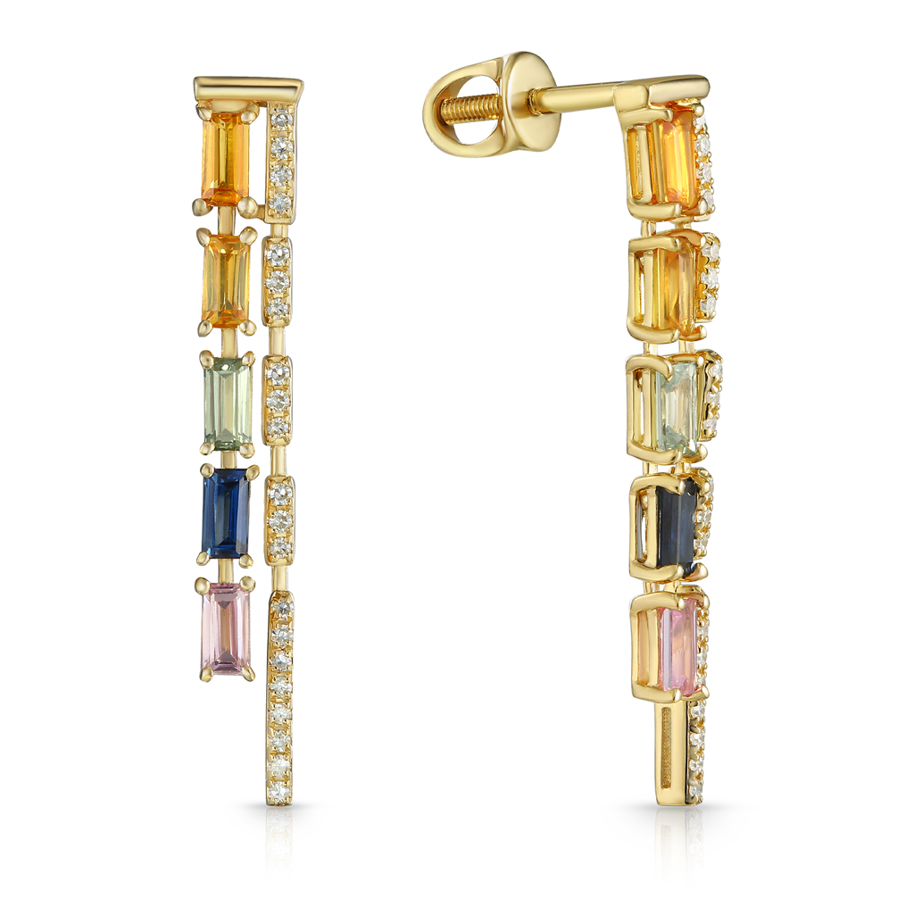 Серьги с английским замком из желтого золота с сапфирами, цаворитами и бриллиантами