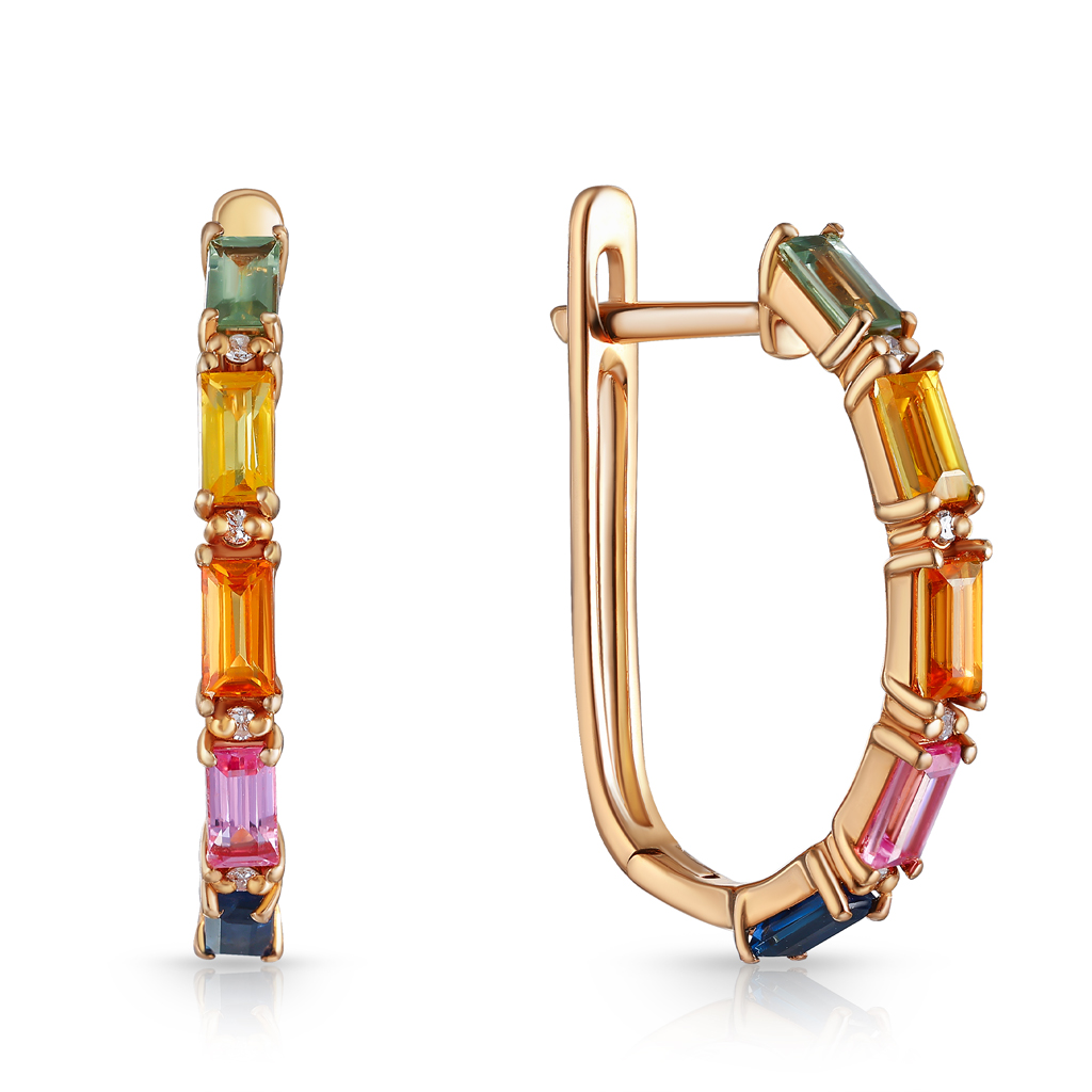 Серьги с английским замком из красного золота с бриллиантами, сапфирами