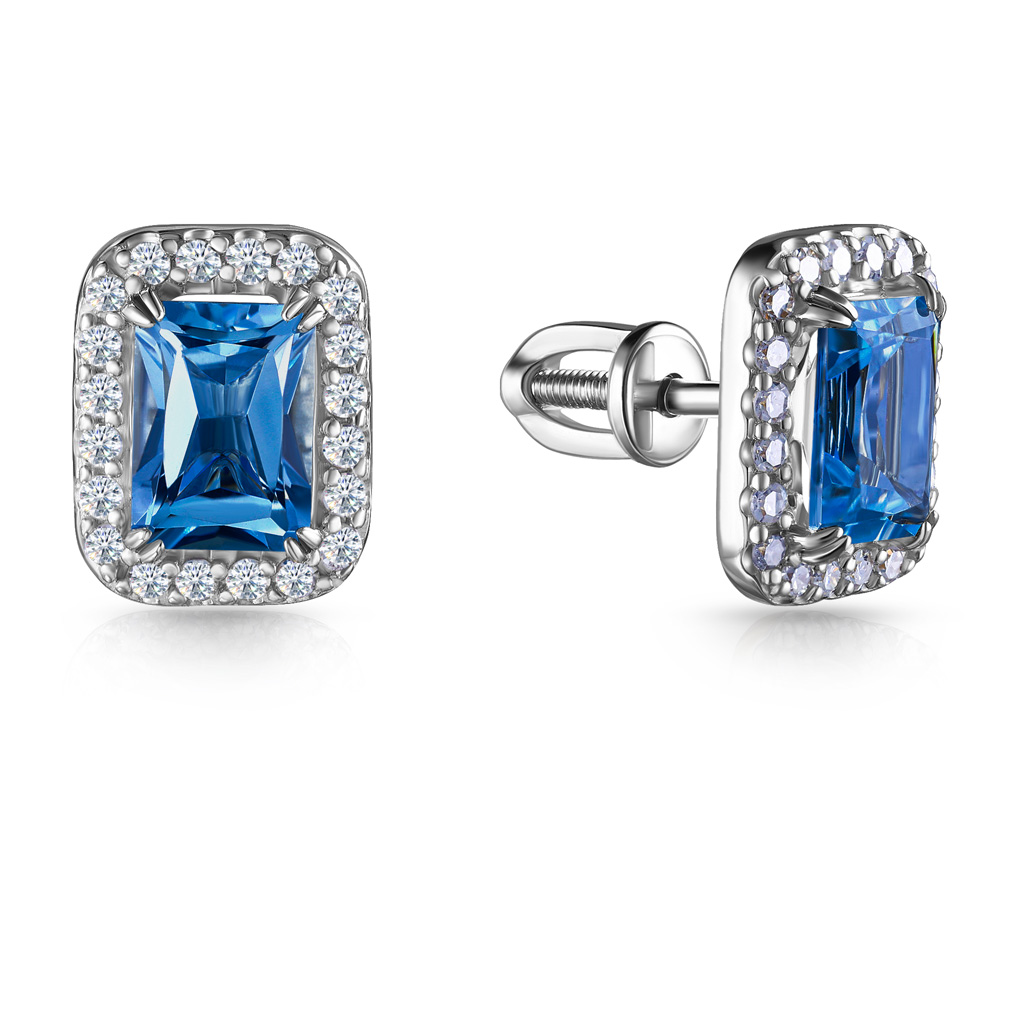 Серьги с английским замком из белого золота с топазами и бриллиантами