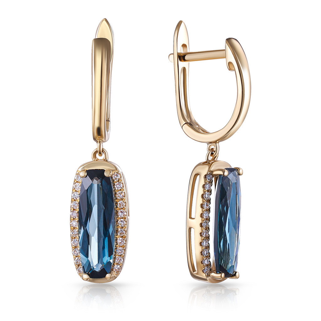 Серьги с английским замком из желтого золота с бриллиантами, топазом