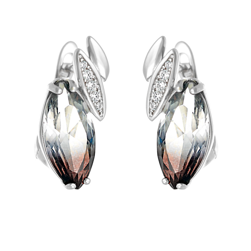 Серьги с английским замком из серебра с керамиками, кварцами и циркониями