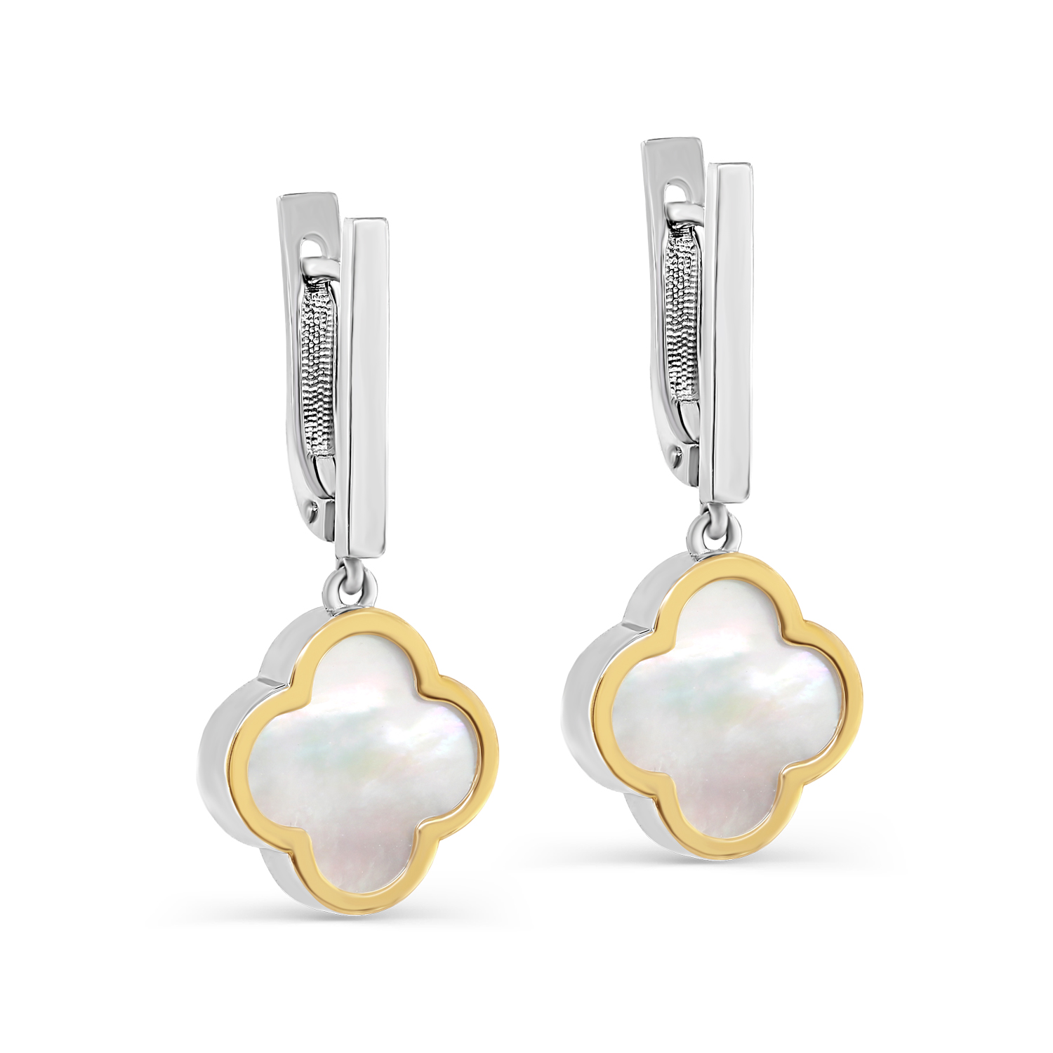 Серьги с английским замком из белого золота с перламутром, бриллиантами
