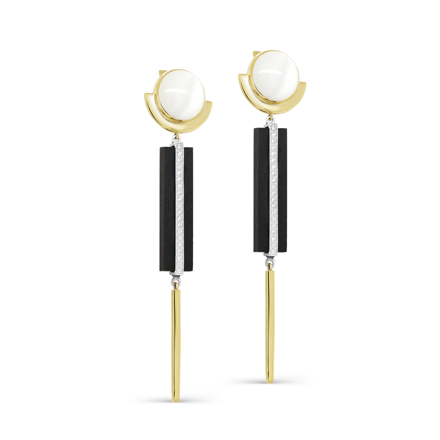 Асимметричные пусеты из белого золота с бриллиантами, перламутром