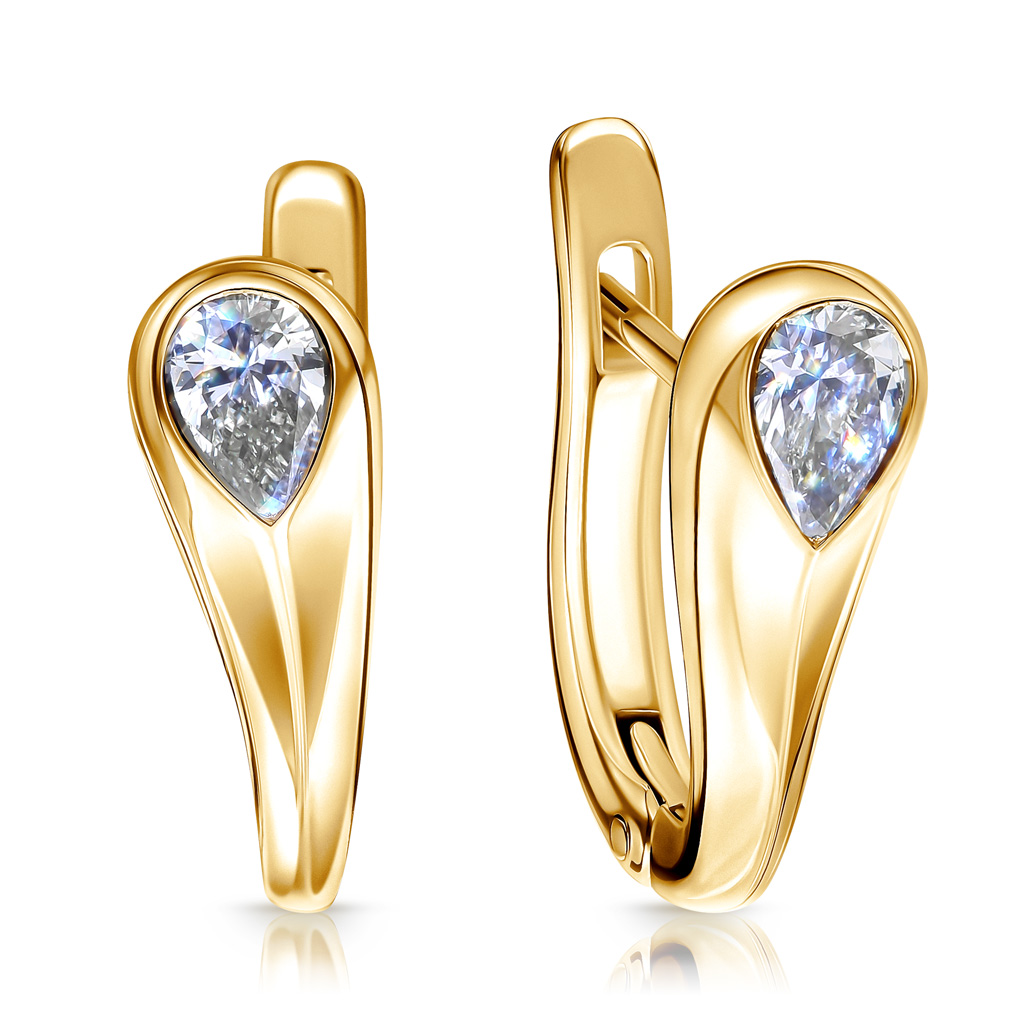 Серьги с английским замком из жёлтого золота с бриллиантами "груша"