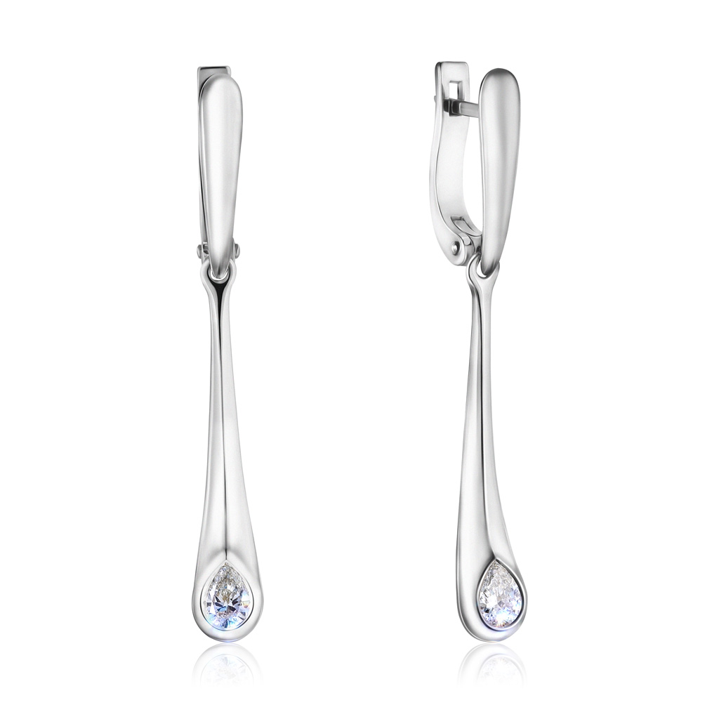 Серьги с английским замком из белого золота с бриллиантами