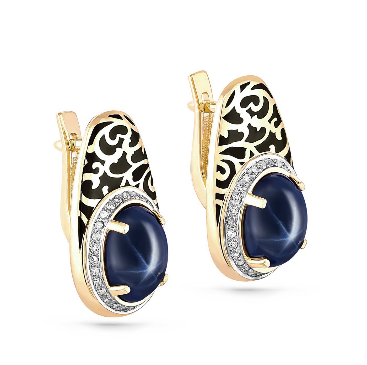 Серьги из желтого золота с бриллиантами, сапфирами