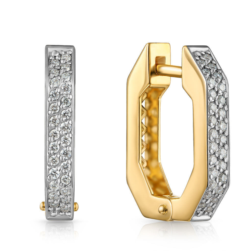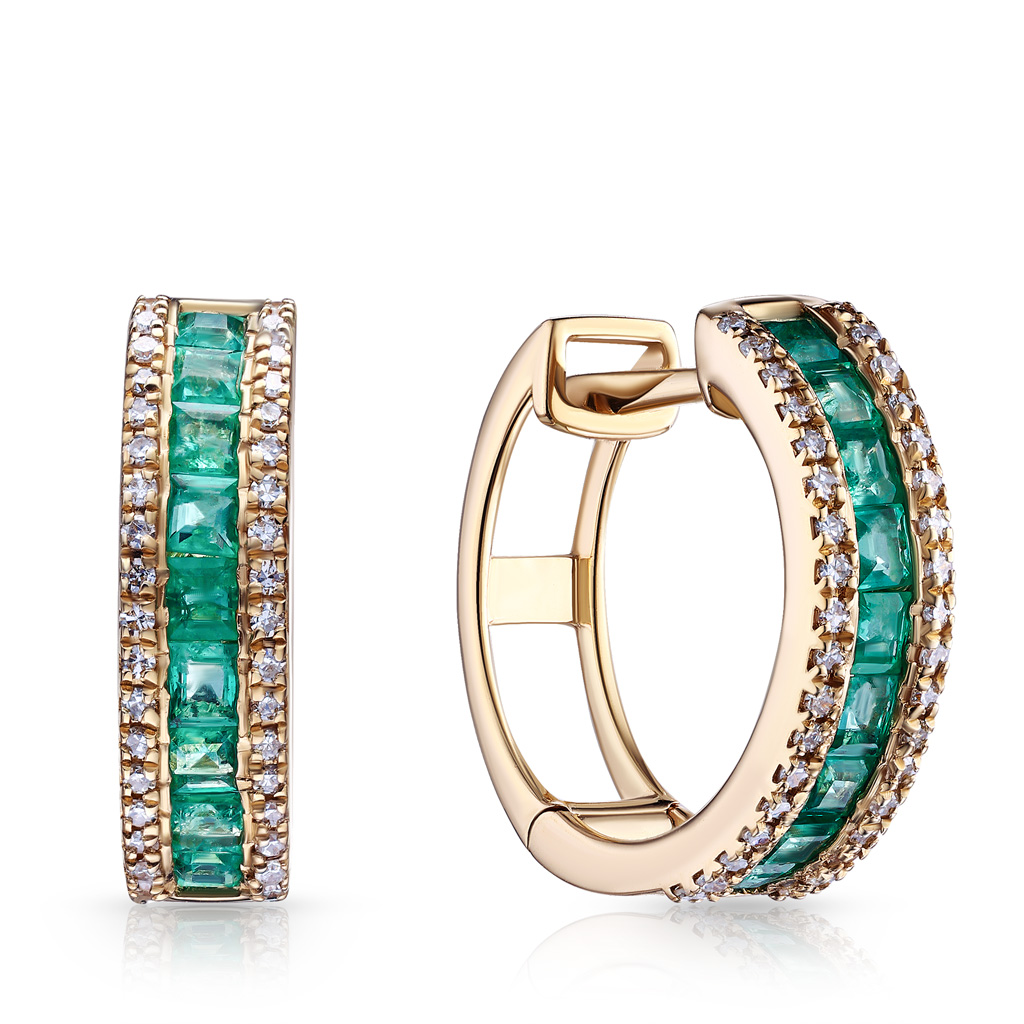 Серьги Конго из желтого золота с бриллиантами и изумрудами