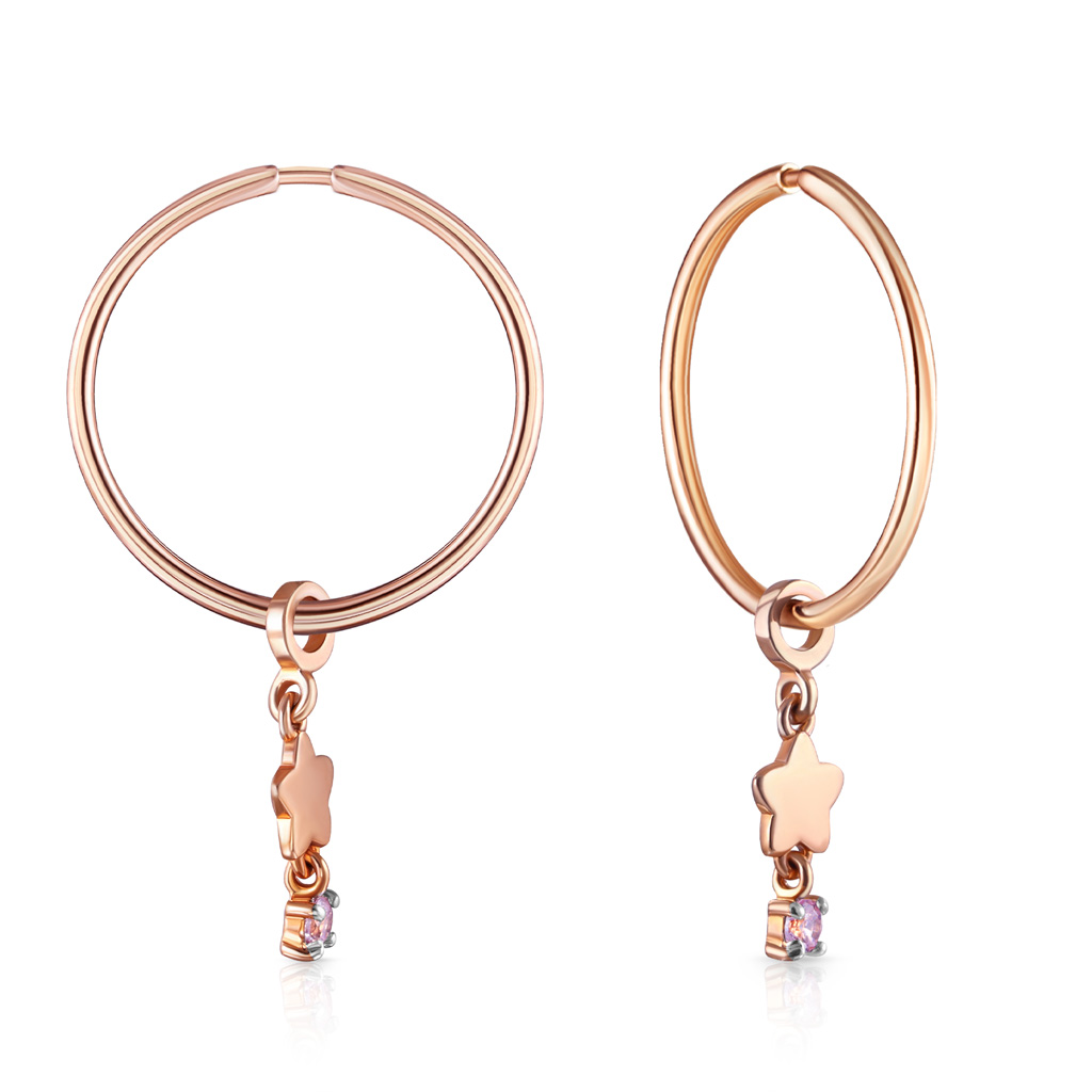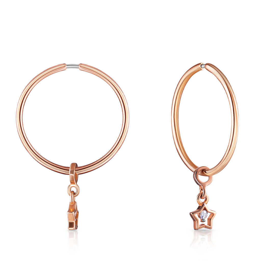 Серебряные серьги конго с бриллиантами, золочением
