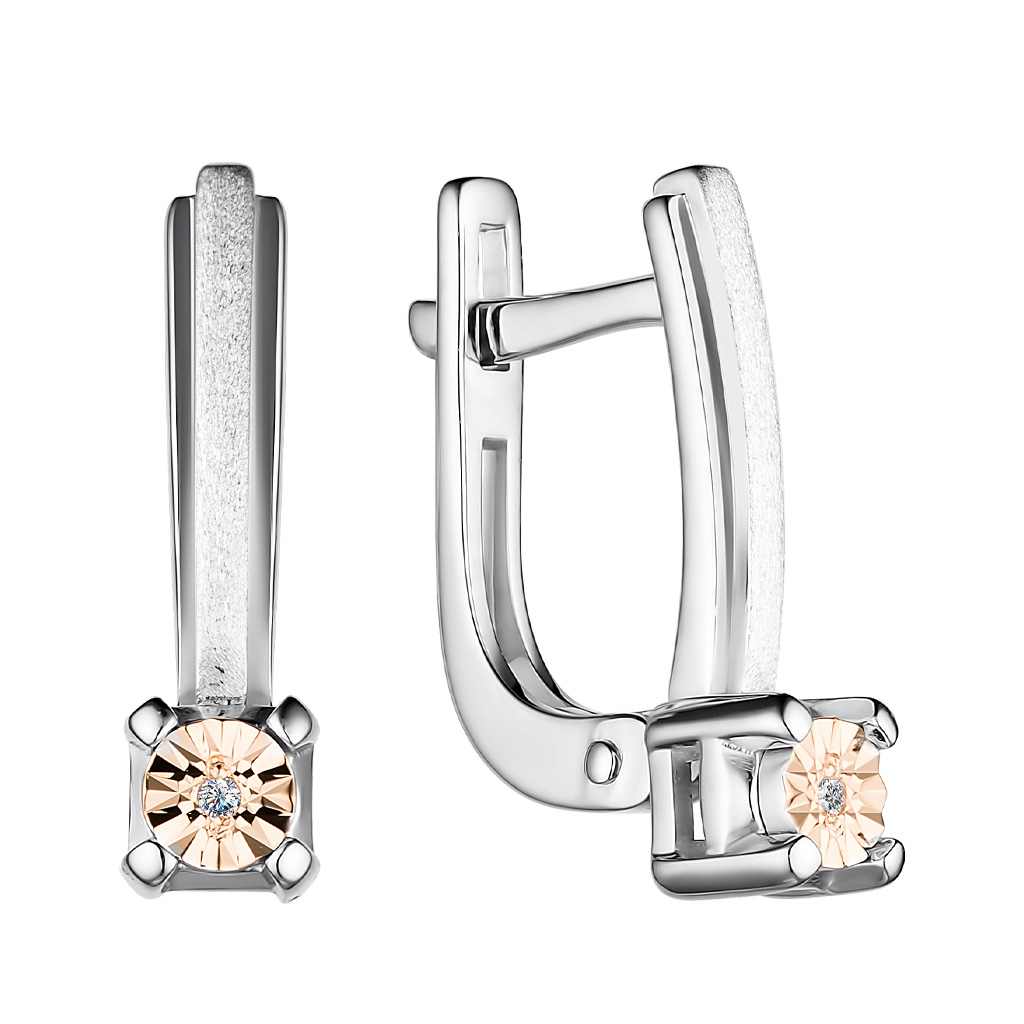 Серьги с английским замком из серебра с фианитами, авантюринами