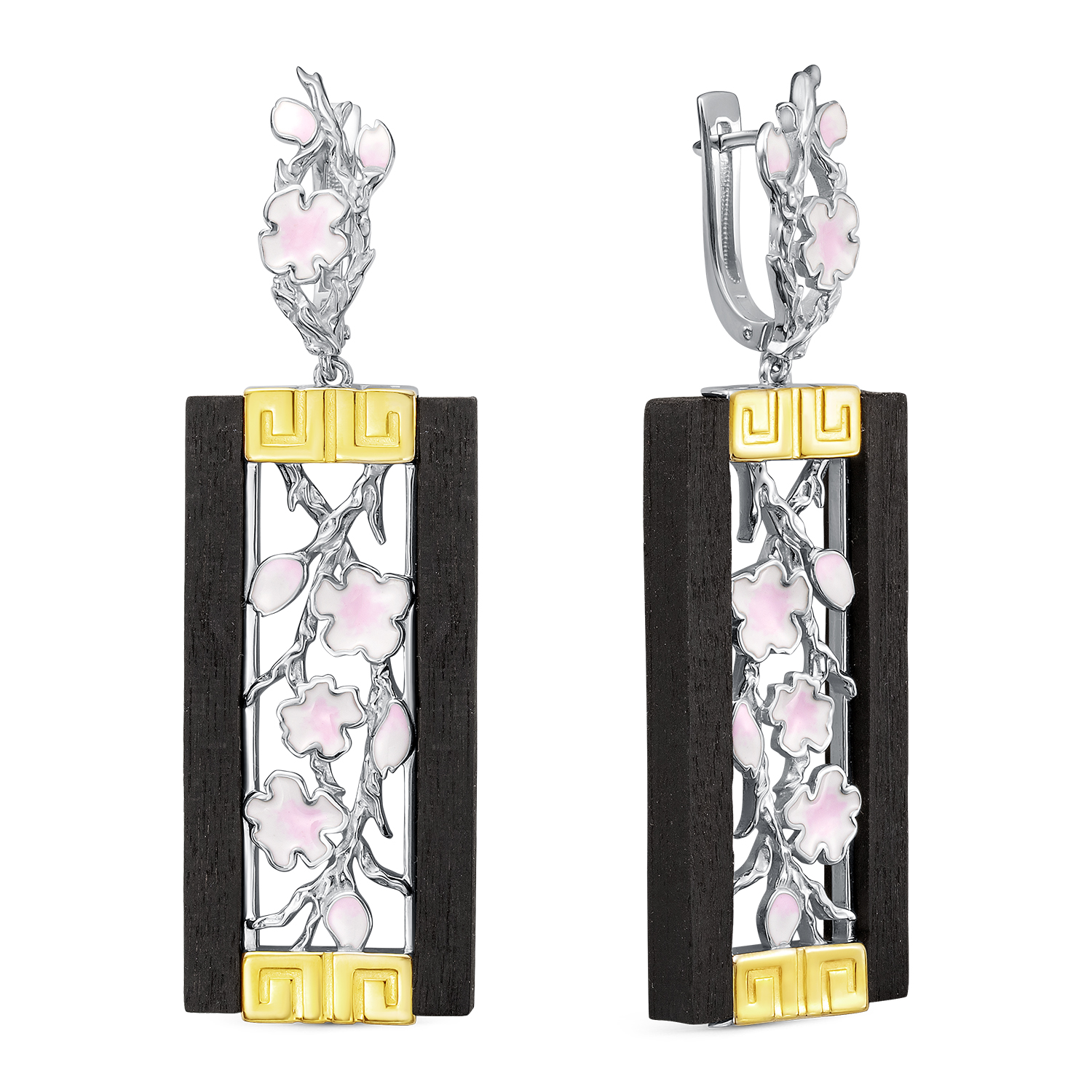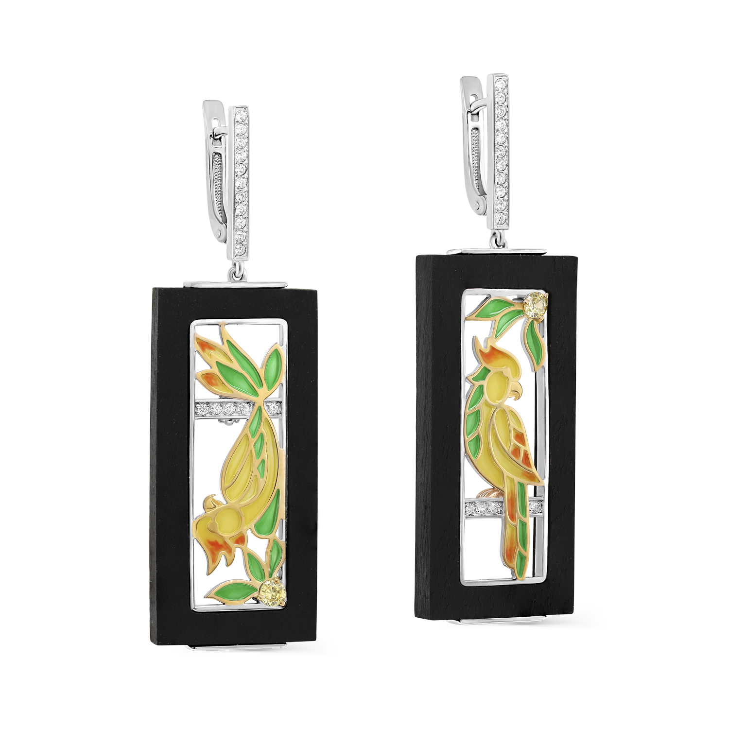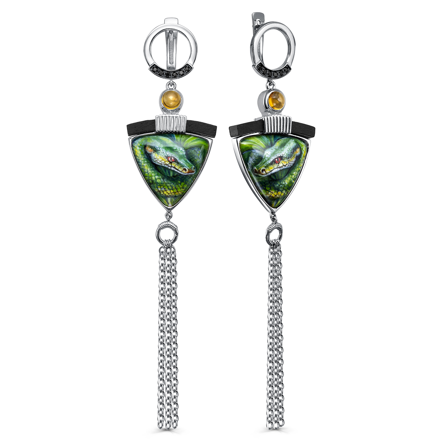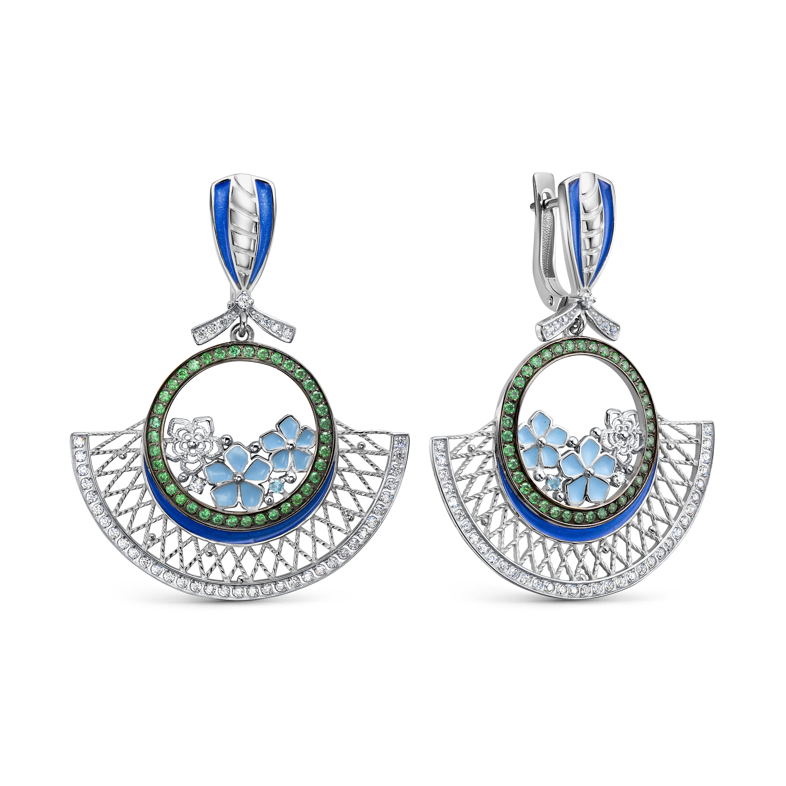 Серьги с английским замком из серебра с шпинелью, топазом, эмалью