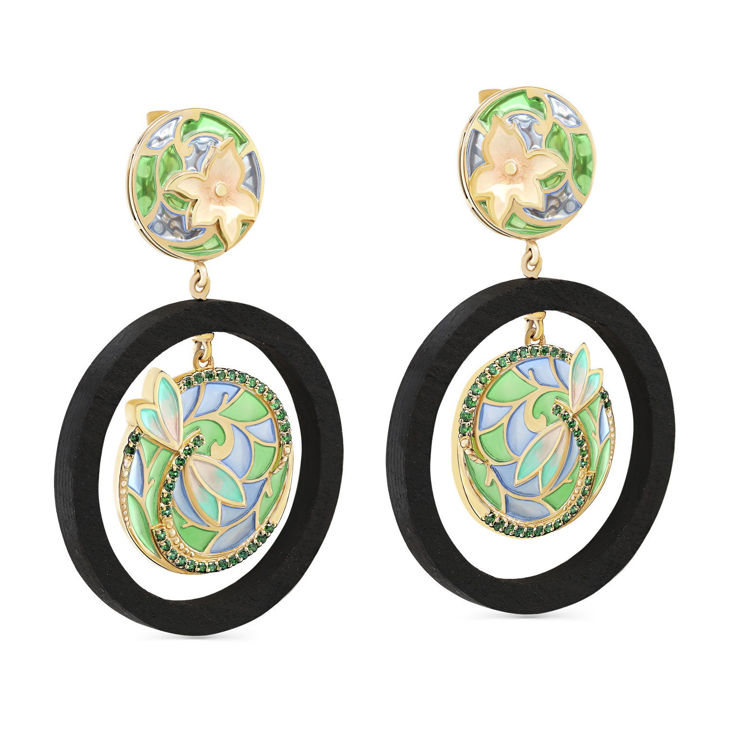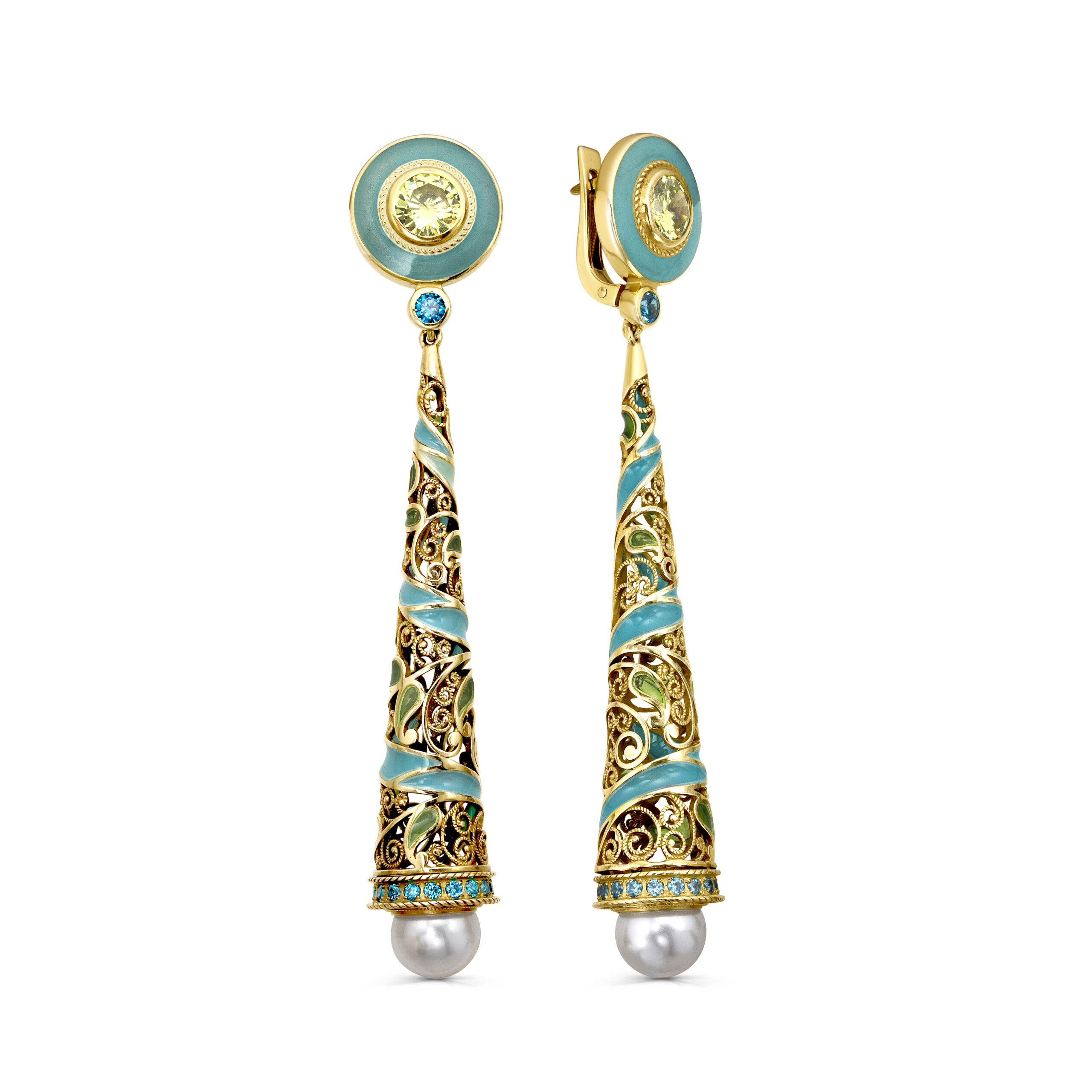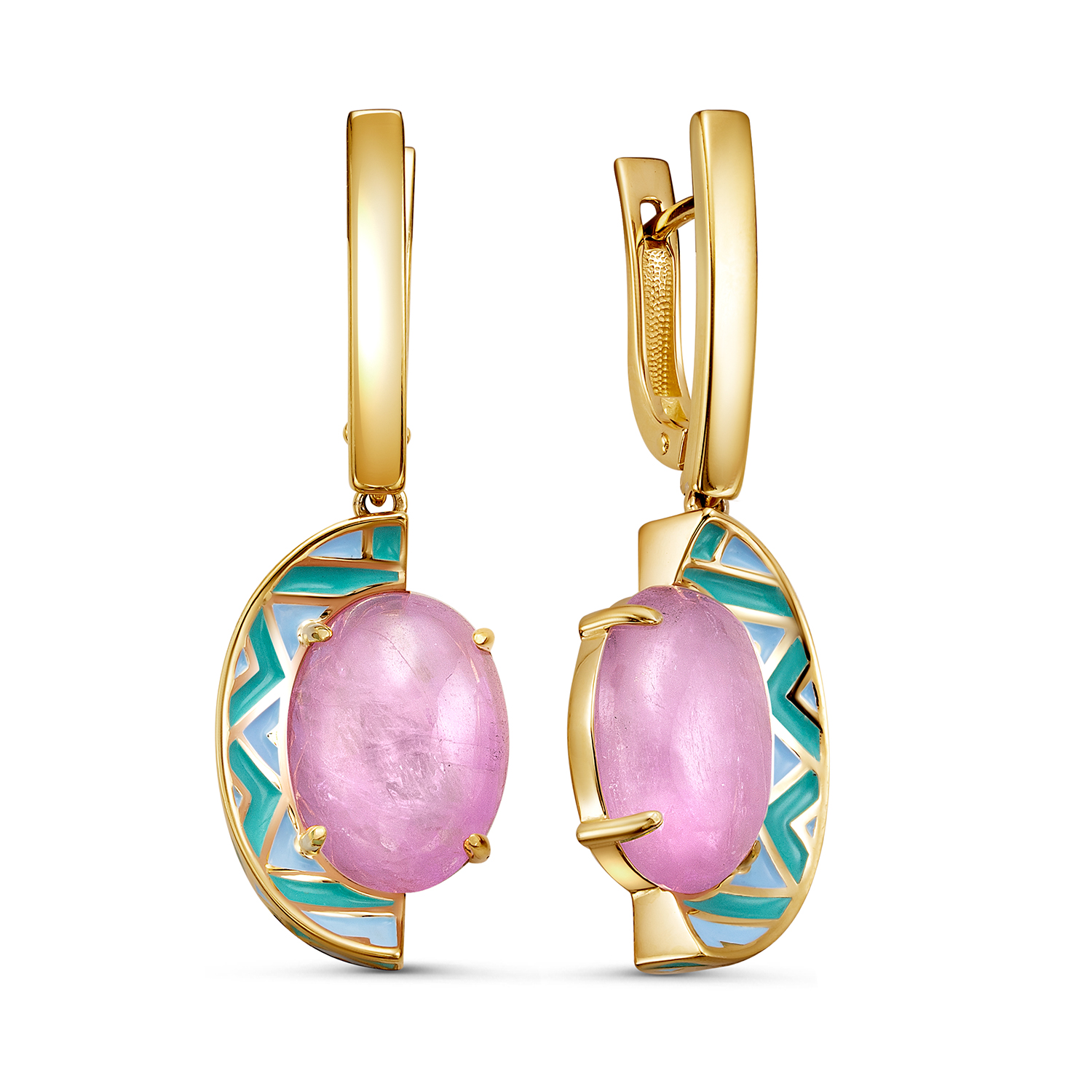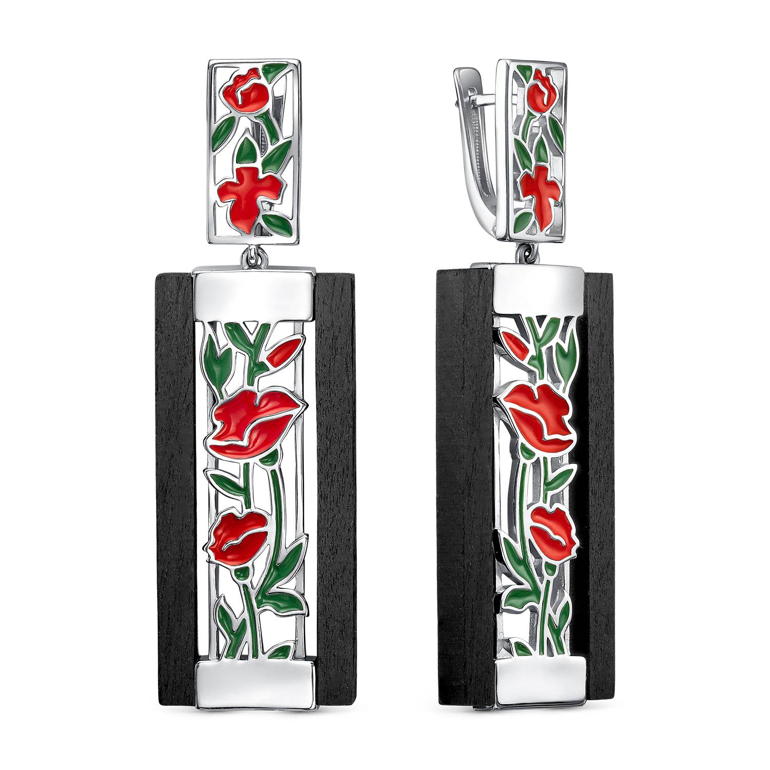 Серьги с английским замком из серебра с шпинелью, топазом, эмалью