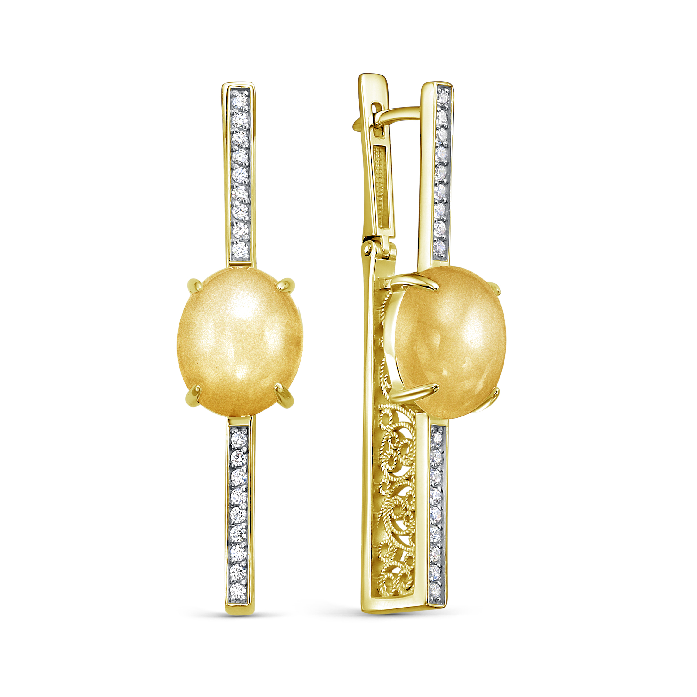 Серьги из серебра с цитринами, фианитом